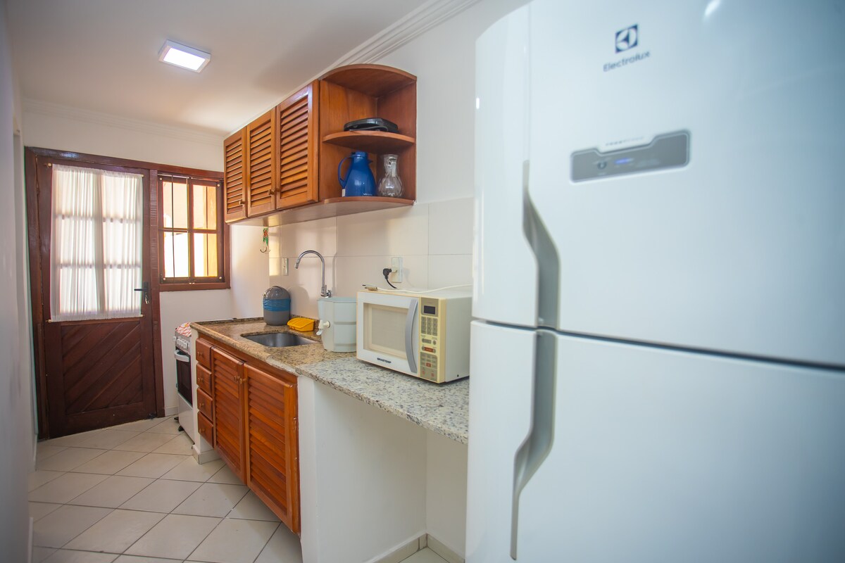 Übernachte in einer gemütlichen Wohnung in Strandnähe mit Komfort und Ruhe. Das Hotel liegt in Coroa Vermelha in der Nähe des Strandes, einheimischer Messe und Hauptgeschäfte (Supermärkte, Pizzerien, Handwerksläden und verschiedene Produkte). Diese Wohnung verfügt über: - 2 Schlafzimmer, beide mit Klimaanlage, Wohnzimmer mit Sofa und TV - Voll ausgestattete Küche mit allen Utensilien, Kochfeld und Elektroherd. 2 Badezimmer - Bereich mit Grill und Außendusche - Privatparkplatz - Handtücher und Bettwäsche