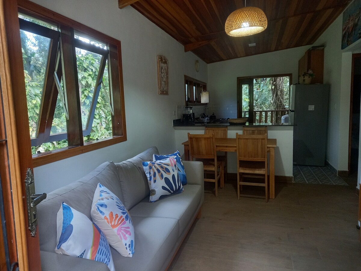 Diese neue Hütte inmitten des Dschungels und des Fazenda Ressaca-Geländes ist für diejenigen, die gutes Design zu schätzen wissen und Ruhe, Komfort und einen tiefen Kontakt mit der Natur suchen. Diese Hütte wurde als Kokon geschaffen, um das überschwängliche Atlantik-Regenwald-Reservat von über 700.000 Quadratmetern zu erleben und in Verbindung zu treten, und wurde für ein unvergessliches Erlebnis der Entspannung und Freude konzipiert. Plus tägliche Zimmerreinigung und frische lokale Produkte (einige vom Bauernhof), damit du Frühstück zubereiten kannst.