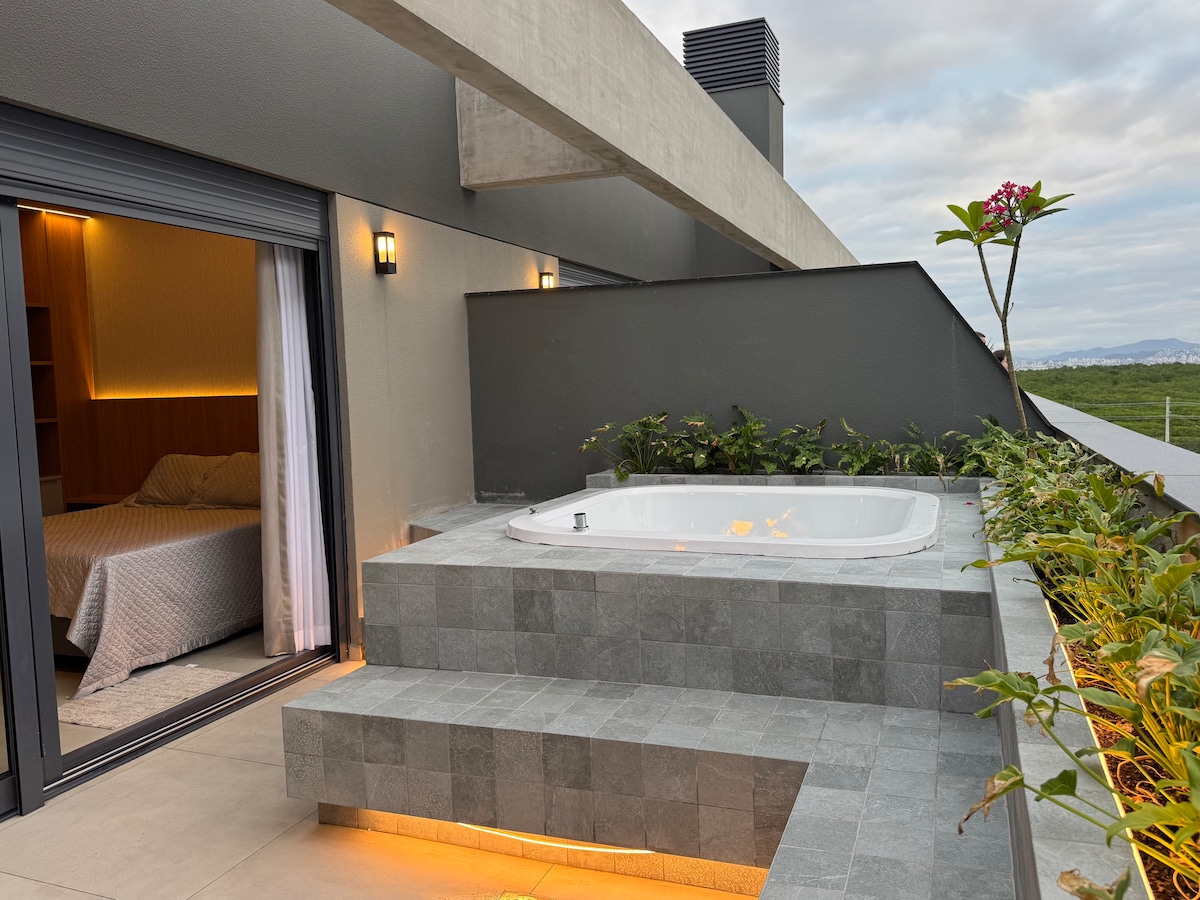 Studio com terraço e Jacuzzi. Luxo na SC 401