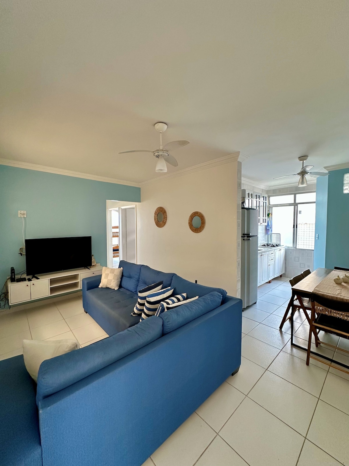 My space is in front of the beach, located 8 meters from the beach, walking in the sand, has restaurants and meals close by, craft fair, banks, markets, commerce in general, next to the sea. You will love my space, everything brand new, beaches all suitable for bathing, quiet city, clear, modern environment. My space is good for couples, individual adventures, business travelers and families (with kids). It has air conditioning !! Apartment Only for families and couples.