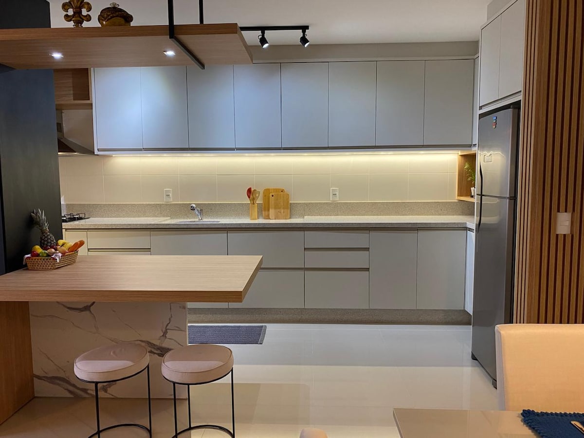 Wunderschönes Apartment mit 2 Suiten + Bad, maßgeschneiderten Möbeln, ausgestattet mit Klimaanlage in den 2 Suiten und im Wohnzimmer, Smart-TV, WLAN, Waschmaschine und Trockner, voll ausgestattete Küche. Jedes Zimmer ist luftig. Private Garage. Die Wohnung ist wunderbar und komplett!! Gäste jeglicher Herkunft sind willkommen. Palmas Beach - in Governador Celso Ramos - SC. Schöner, sauberer Strand. Richtiges Meer zum Baden. Zu Fuß ist der Zugang zum Strand erreichbar. Strand, der von Einheimischen und Touristen begehrt wird.