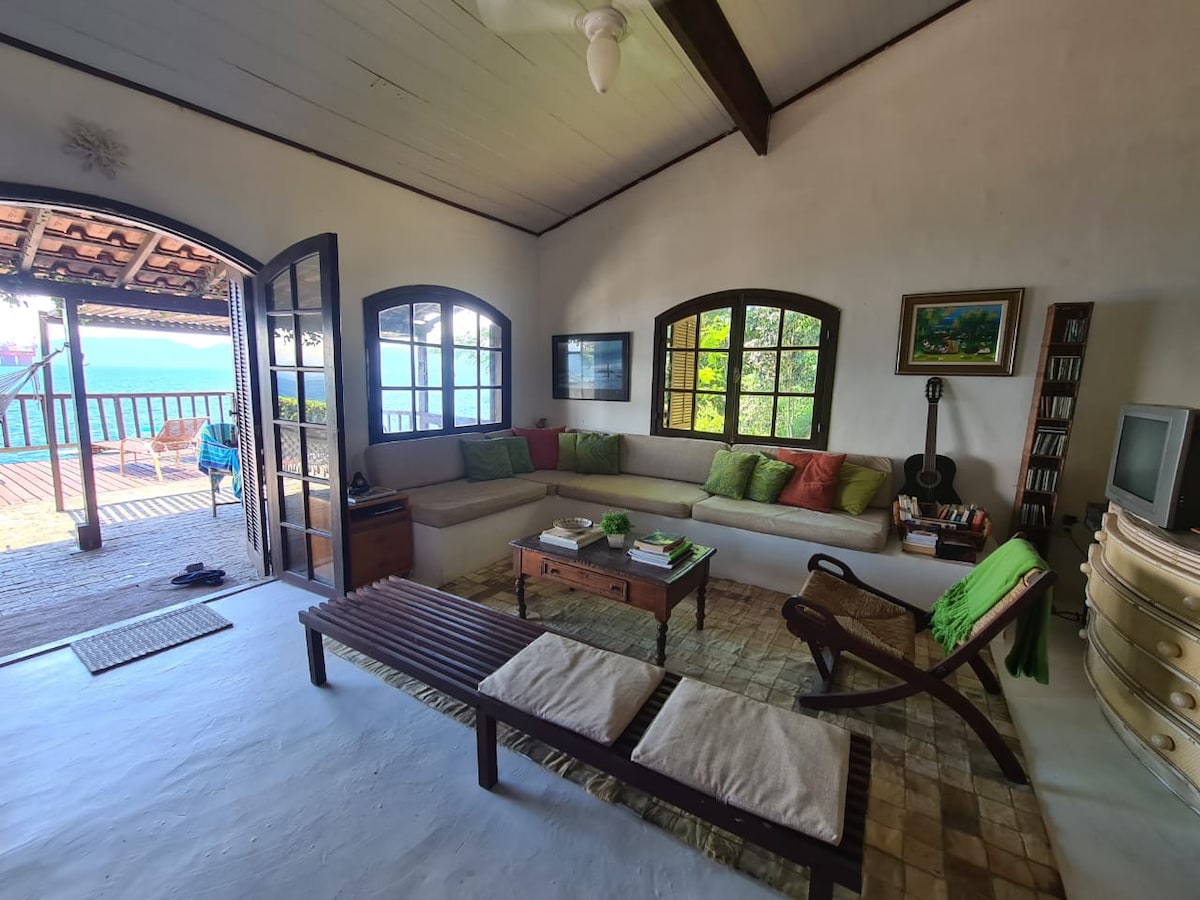 2-stöckiges Chalet und ein Aussichtspunkt mit Blick auf das Meer, umgeben vom Atlantischen Wald. Es gibt 2 Schlafzimmer, Büro, Oberdeck mit Zugang zum Pavillon, ausgestattete Küche, TV-Raum mit Netflix, Badezimmer, voll eingezäunten Hinterhof, Dusche, Grill und Garten mit Obstbäumen. Wir haben WLAN auf dem gesamten Grundstück. Wir sind nur 10 Minuten vom Pier und 7 Minuten von den Geschäften von Vila do Abraão entfernt. Hier ist es nicht nur eine Unterkunft, sondern ein Erlebnis des Eintauchens in die Natur :-)