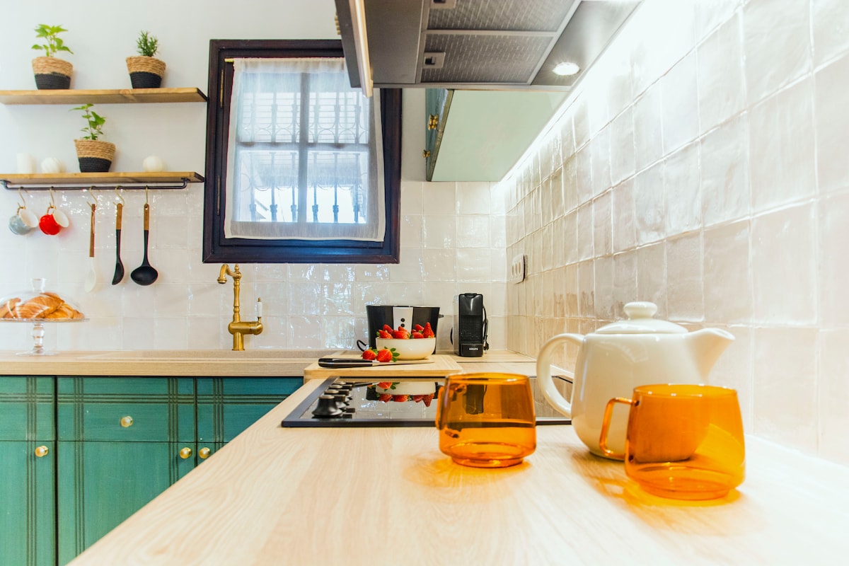 Entspanne dich in diesem ruhigen, stilvollen Raum Sehr teures Parfüms in kleinen Flaschen ... genauso wie unser Manzaraki: Klein, einfach, cool, hell, nagelneu, mit Holzmöbeln und -rahmen , komplett ausgestattet mit den notwendigen Annehmlichkeiten. Auf dem Berg mit Blick auf das Meer und mit eigenem Garten mit Bäumen und bunten Blumen...bereit, deinen Urlaub und deine Momente der Sorgfalt zu beherbergen!