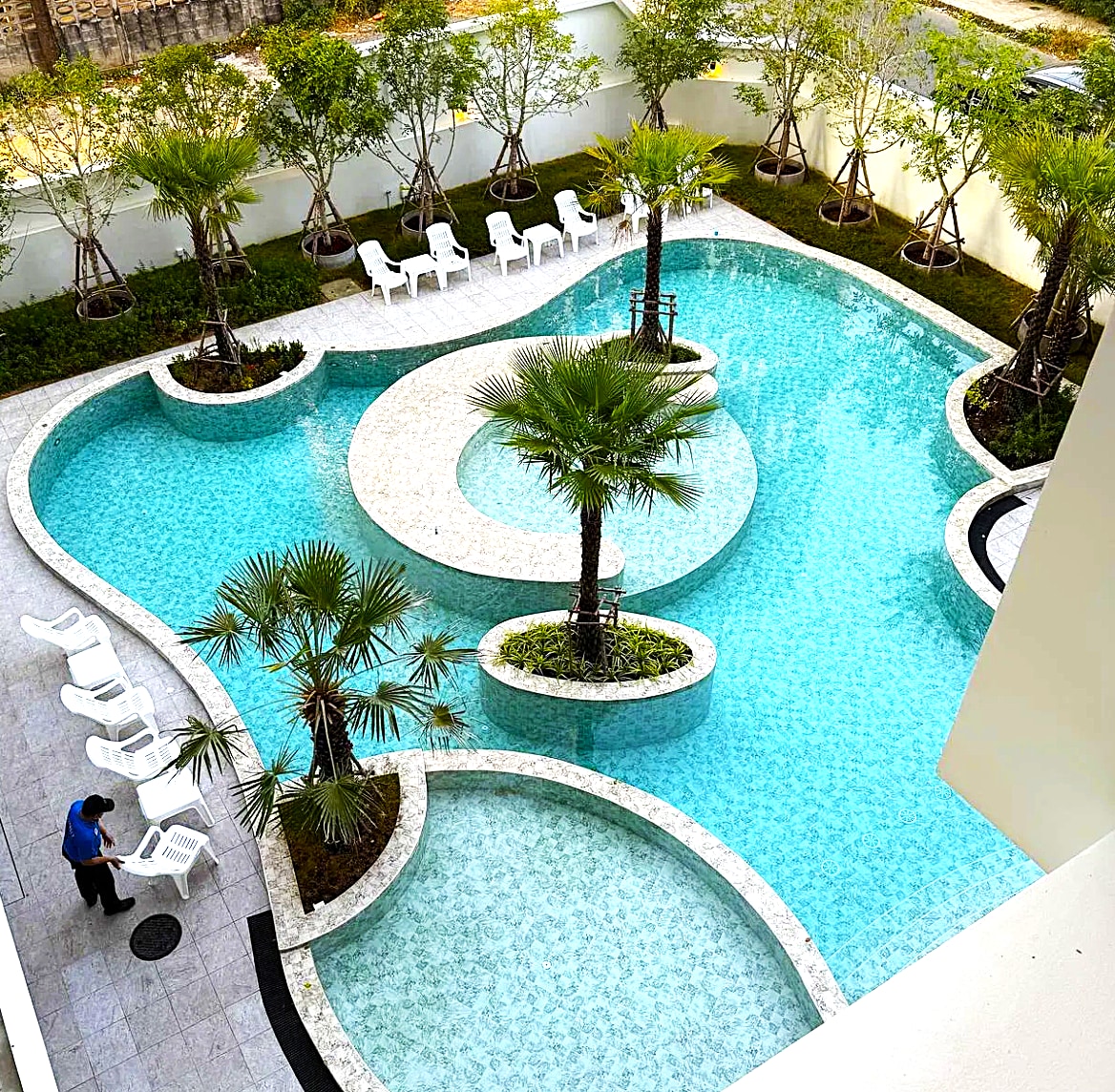 Paradies am Strand - 1 Minute zum Strand. Erlebe das Beste von Pattaya in dieser luxuriösen Wohnung am Strand, nur 1 Gehminute vom schönsten Strand der Stadt entfernt. Umgeben von Restaurants, Läden und Märkten, die nur 3 Gehminuten entfernt sind, ist es der perfekte Ort für Entspannung und Bequemlichkeit. Genieße einen atemberaubenden 80-Meter-Pool, der sich auf deiner privaten Terrasse erstreckt und eine einzigartige Oase schafft. Mit einem geräumigen Wohnzimmer und nur 10 Minuten zur Pattaya Walking Street ist dies der ideale Rückzugsort für deinen Kurzurlaub.