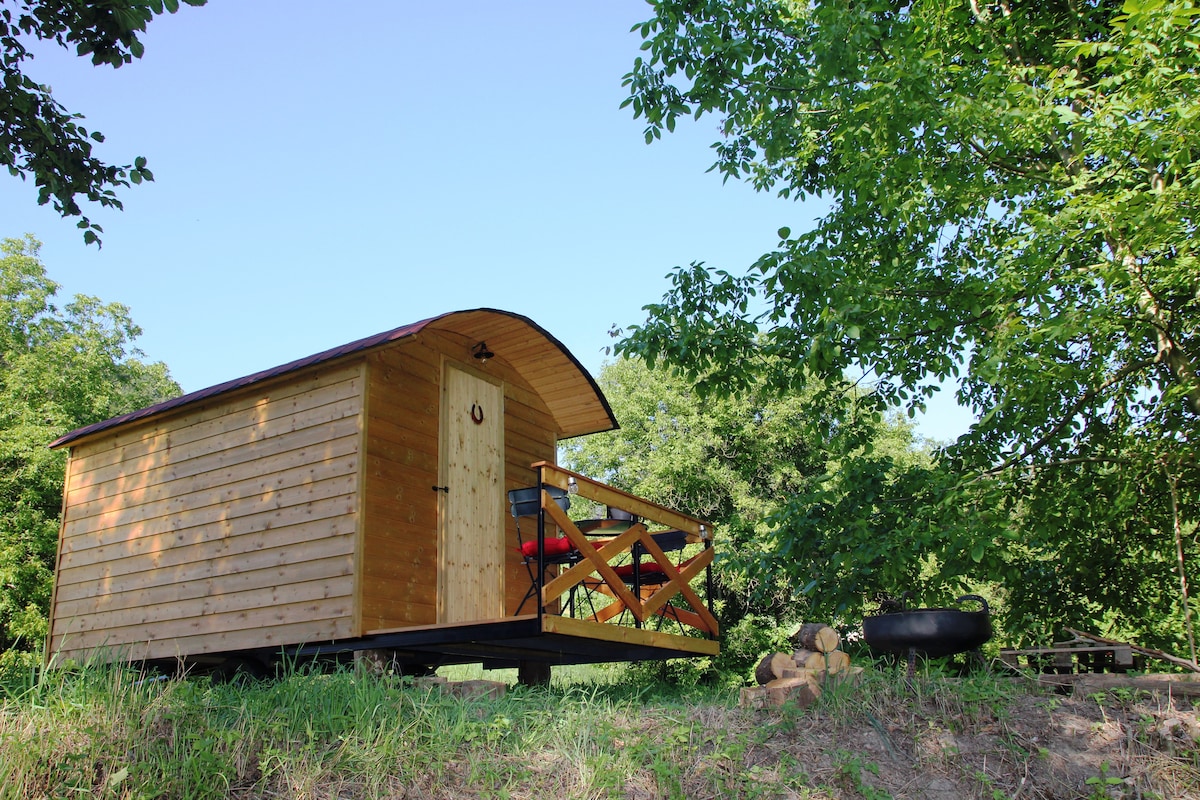 Our no-frills shepherd’s hut sits by the Drava River and a big wild meadow, just 4 km from Ptuj, Slovenia’s oldest town. Nature lovers (and friendly dogs) welcome! A nearby road offers easy access. Enjoy a BBQ lunch by the river, then relax as the sun sets, frogs sing, and stars light up the night sky. For the full countryside experience, earplugs are optional! Rustic, peaceful and real! <3 *Dogs stay free—please scoop the poop & keep them safe. *Tourist tax paid separately in cash on arrival.