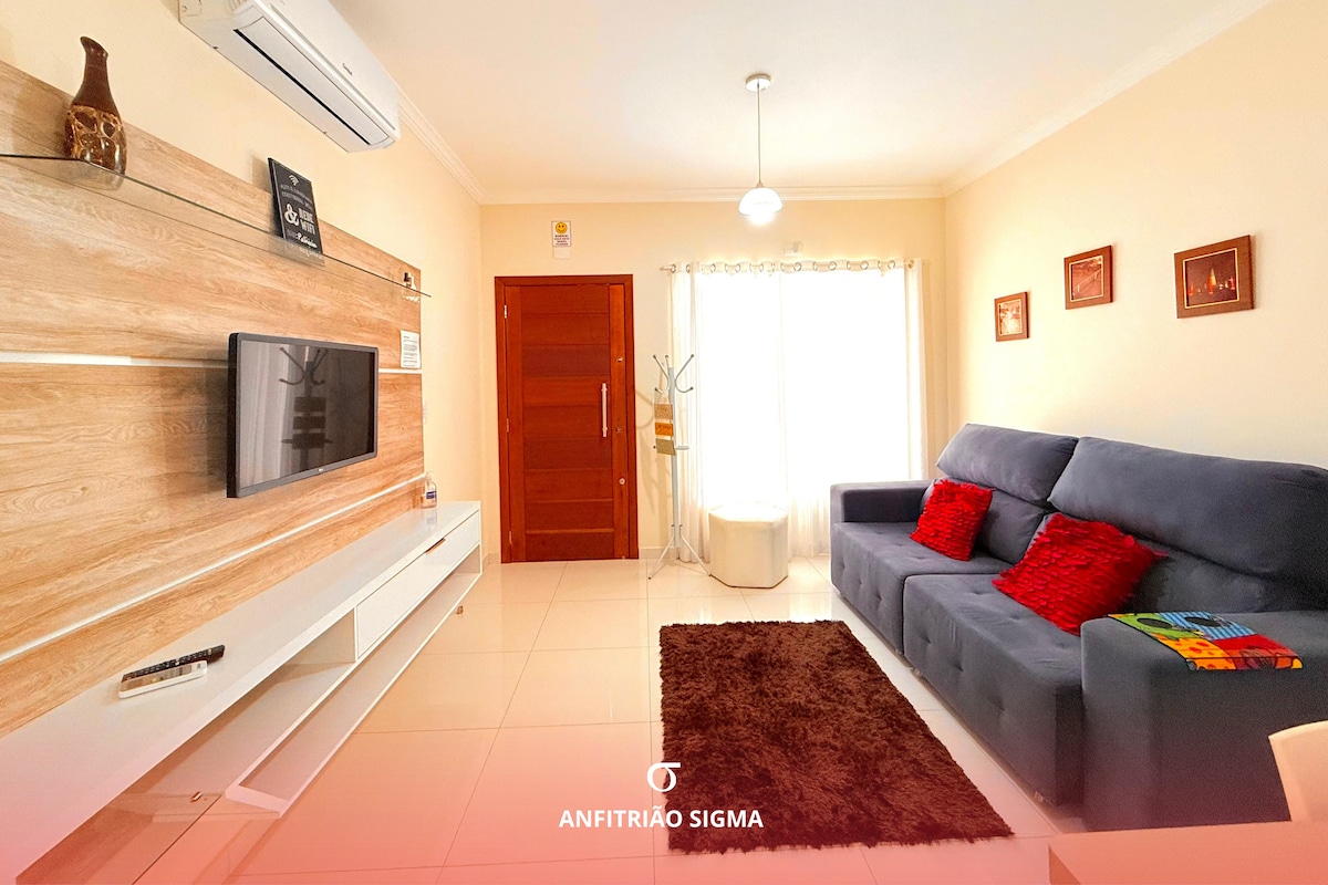 Gemütliches zweistöckiges Haus mit zwei Schlafzimmern (maximal 7 Personen), zwei voll ausgestatteten Badezimmern, Wohnzimmer, voll ausgestatteter Küche und Platz für zwei Autos. Die Residenz befindet sich in einer Wohngegend, ruhig und friedlich in der zentralen Region von Foz do Iguaçu. Öffentliche Verkehrsmittel 450 Meter entfernt (5 Minuten). Das Haus verfügt über zwei nicht überdachte Garagen, die zur Verfügung stehen. Du teilst dir den Außenbereich des Hauses mit nur einer Person, die gerne Informationen über die Stadt gibt.