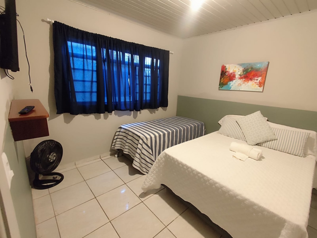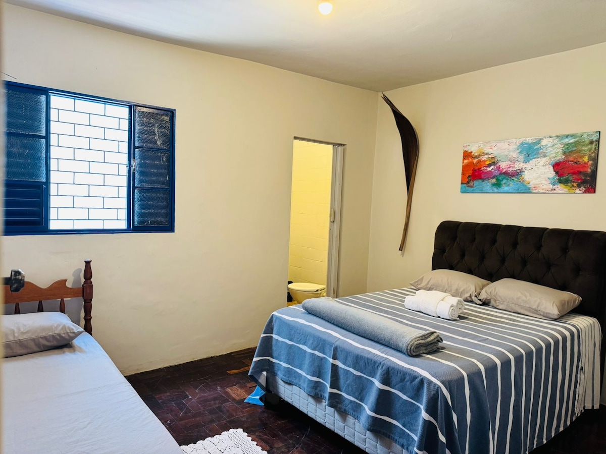 Wir arbeiten daran, Ihnen den bestmöglichen Aufenthalt in Presidente Prudente zu bieten. Unser Haus ist eine wahre Oase des Komforts und der Ruhe, mit einer rustikalen Dekoration, die eine gemütliche Atmosphäre schafft. Um Ihren Komfort zu gewährleisten, bieten wir WLAN-Internet, Smart-TV mit Netflix, Handtücher und Bettwäsche, Klimaanlage in einem der Schlafzimmer (Doppelzimmer) und Deckenventilator im anderen Schlafzweistöckiges Bett), elektronisches Tor, Waschmaschine und Utensilien für kurze und lange Aufenthalte.