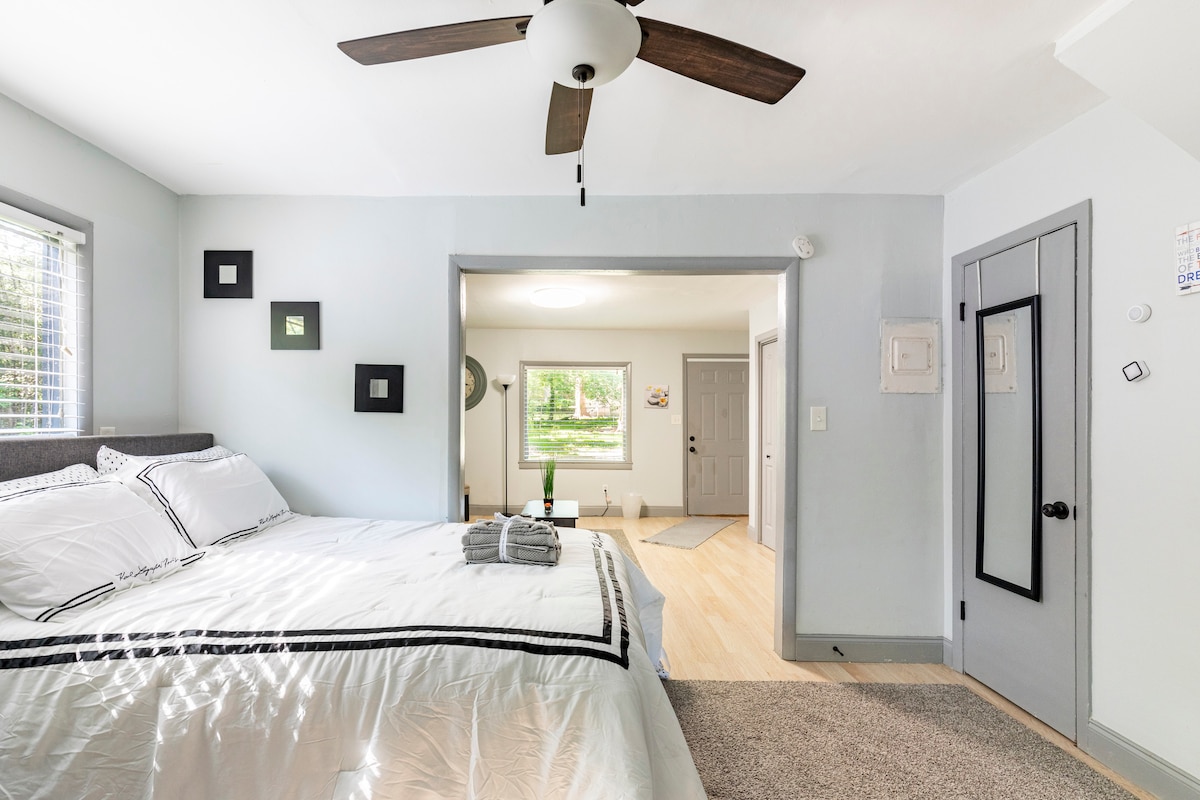 Dieses stilvolle Zuhause ist perfekt für einen einzelnen Reisenden oder einen Gruppenaufenthalt geeignet. Das moderne Design, die stilvollen Möbel und das ultrakomfortable Kingsize-Bett machen diese Unterkunft zur idealen Unterkunft für deinen Besuch in Atlanta. Die Residenz verfügt über einen privaten Eingang und ist vom Haupthaus darüber getrennt. Das Haus verfügt über 1 Flachbildfernseher mit kostenfreiem WLAN, Kabel, NetFlix und anderen Streaming-Anbietern. 15 Minuten von Midtown und 12 Minuten vom Flughafen Atlanta entfernt, ist dies der perfekte Ort für einen Besuch in ATL!