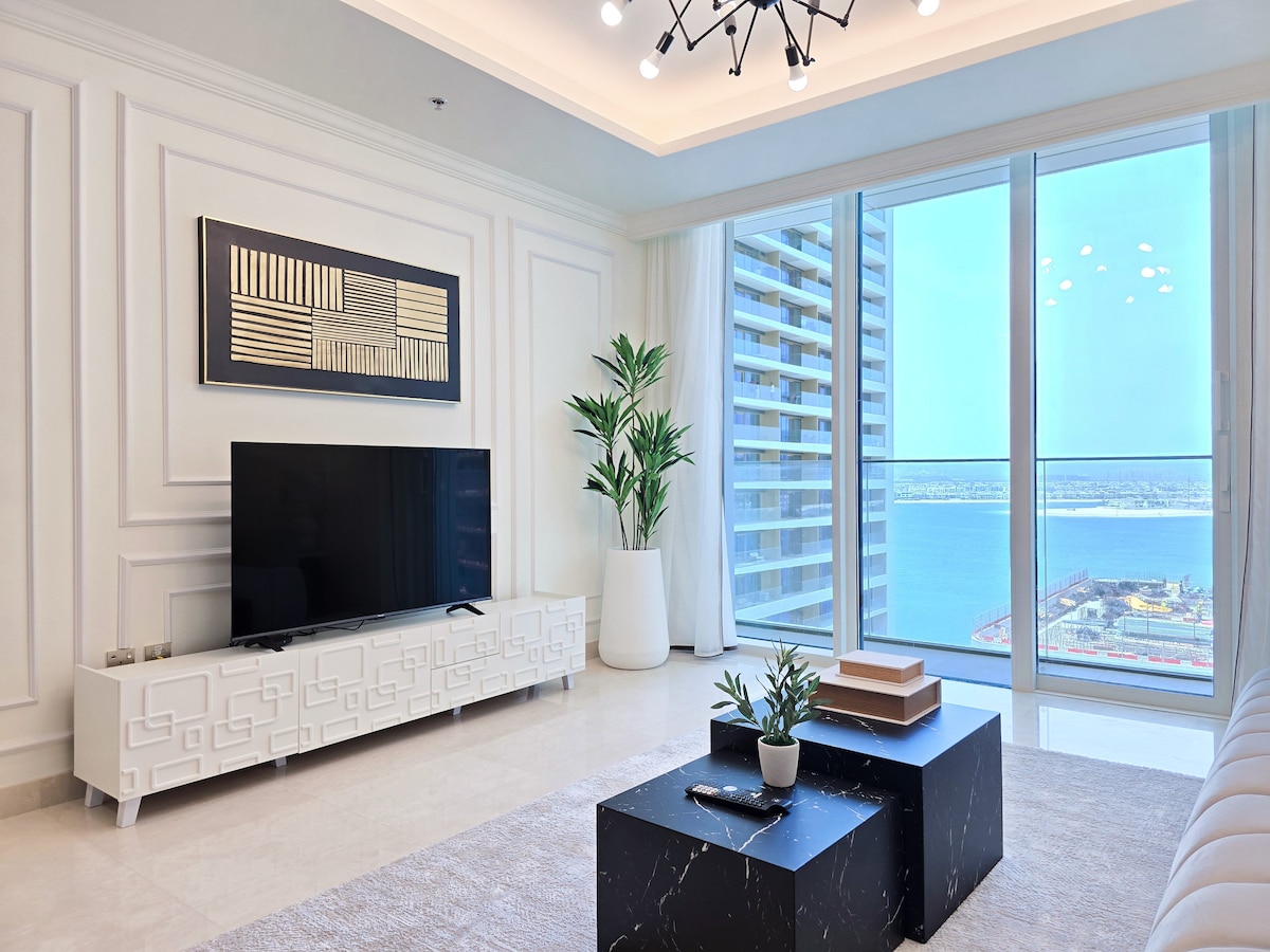 Luxury 2-bedroom apartment located at Emaar Beachfront – Palace Beach Residence. Enjoy a bright, elegant space with a balcony and partial sea view. The master bedroom features a king-size bed with Palm views, while the second bedroom offers a queen-size bed. Private beach access, pool, gym, and 24/7 security. Premium service, fast response time (under 10 minutes), and personalized or self check-in. Ideal for families and high-end stays.