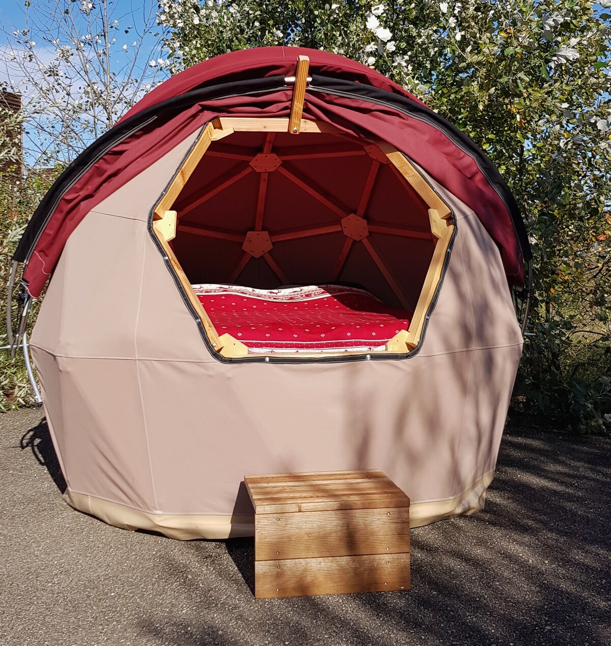 Entdecken Sie unsere neue romantische geodätische Kuppel, die speziell für Liebende entwickelt wurde, die Intimität und Wohlbefinden suchen. Sie bietet einen idyllischen Rahmen, um besondere Momente zu teilen. Stellen Sie sich vor, Sie befinden sich in einer halbtransparenten Kuppel, die das sanfte Licht der Sterne hereinlässt. Tauchen Sie zu zweit in ein Bad ein, lassen Sie sich von den Düsen massieren und genießen Sie diesen Moment der Entspannung in vollen Zügen. Ausgestattet mit einer praktischen Küche, können Sie köstliche Mahlzeiten zubereiten, die Sie zu zweit genießen können.