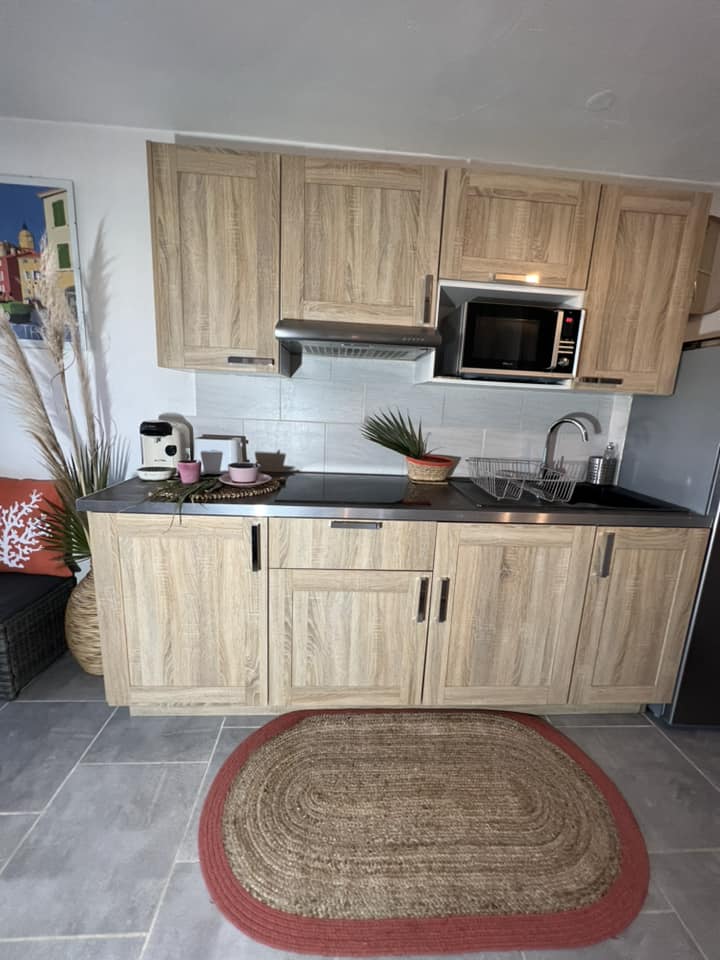 Petit STUDIO très bien équipée avec entrée et parking privé dans une grande Propriété avec piscine et jacuzzi chauffés du 10 avril au 30 octobre . La piscine extérieur et jacuzzi ainsi que le jardin sont partagés mais assez grand pour profiter chacun son espace de tranquillité . Je vis dans la bastide principale . Un Havre de Paix entouré d oliviers centenaires . A 35 minutes de l aéroport de Nice et divers villages provençaux et 14km de Cannes . Tele grand écran /abonnement Netflix
