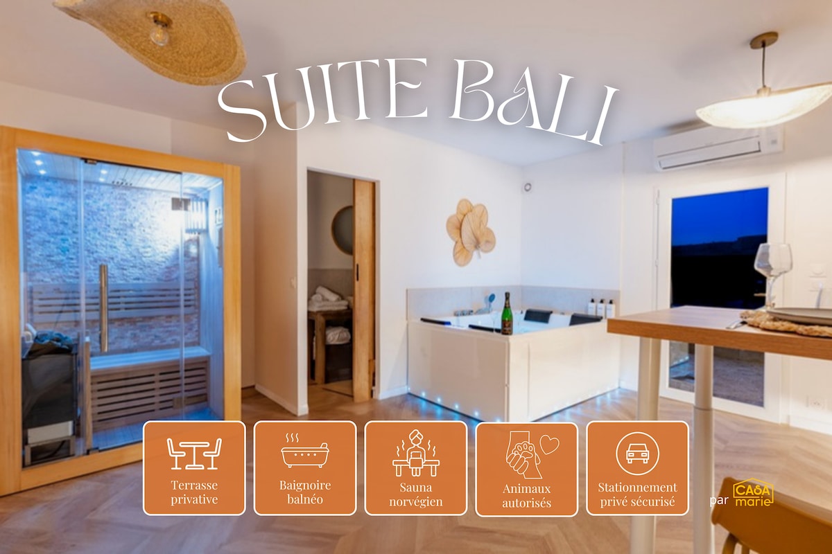 Entspannen Sie sich in dieser ruhigen und eleganten Unterkunft, die frisch renoviert wurde und genießen Sie eine gemütliche und beruhigende Einrichtung. Um dieser Beschreibung gerecht zu werden, haben Sie Zugang zu einer Balneotherapie, einer Sauna, einer ebenerdigen Dusche, einem Massagetisch (auf Anfrage installiert) sowie allen notwendigen Annehmlichkeiten (voll ausgestattete Küche, Fernseher mit Netflix, WLAN, elektrischer Kamin und das kleine Extra einer japanischen Toilette). Kleine Aufmerksamkeiten erwarten Sie...!