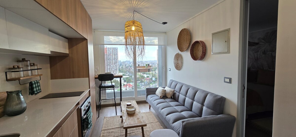 Anspruchsvolle 1D/1B Wohnung in Ñuñoa, ideal für zwei Personen plus eine dritte auf einem Futon. Nur wenige Schritte von der U-Bahn-Station Villa Frei entfernt bietet diese Unterkunft modernes Design, eine ausgestattete Küche, schnelles WLAN, Smart-TV und hochwertige Bettwäsche. In einer ruhigen und gut angebundenen Nachbarschaft gelegen, umgeben von Cafés, Parks und Dienstleistungen. Ein urbanes Erlebnis mit Stil und Komfort.
