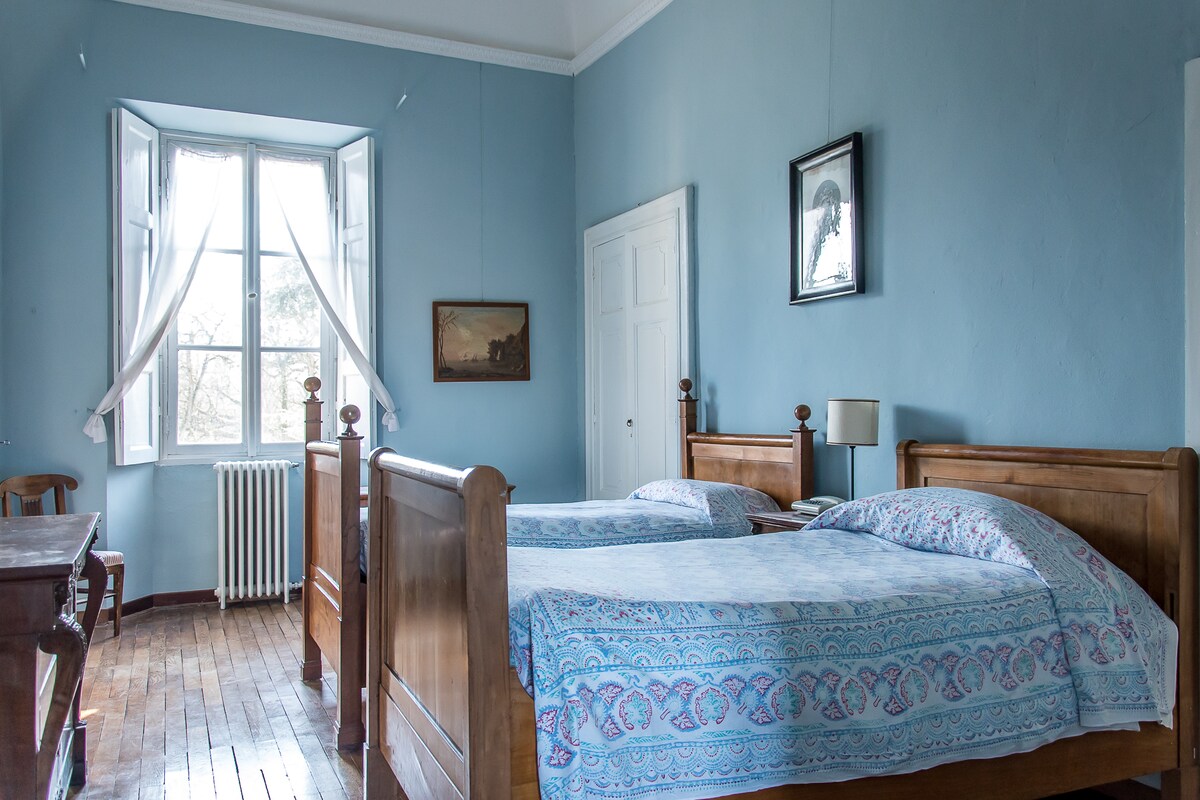 Großes Doppelzimmer mit großem Bad, in einem sehr romantischen unabhängigen Haus mit großem Fenster zu einem grünen Meer. Geräumiges Doppelzimmer mit eigenem Bad, in kleiner romantischer Abhängigkeit, mit toller Aussicht auf den umliegenden Wald