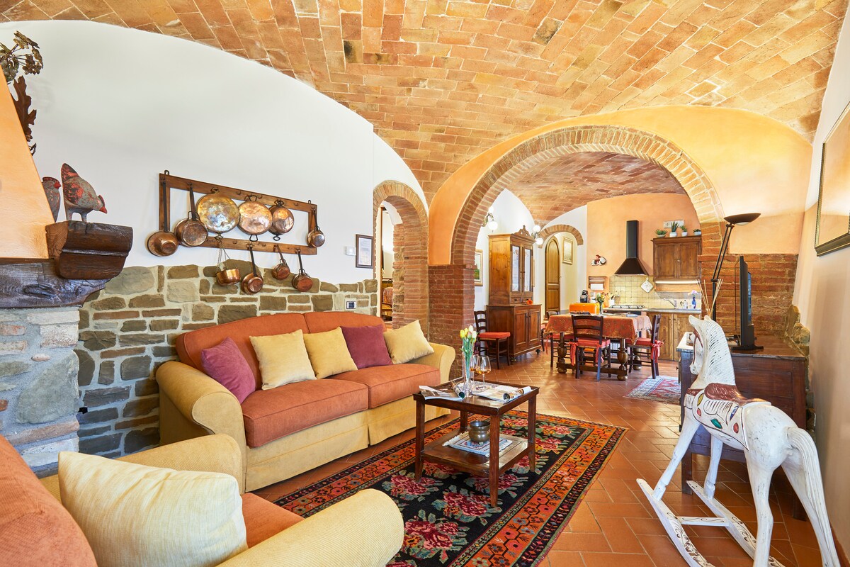 Seit 1989 empfängt der Agriturismo la Casella seine Gäste mit Vertrautheit und Freundlichkeit. Das Bauernhaus überblickt die Hänge von Pratomagno auf 500m über dem Meeresspiegel. Das Anwesen ist von Olivenhainen umgeben und Ihr Aufenthalt wird von schönen Blüten von Geranien und Hortensien belebt werden. Dies ist Schütze die erste der sechs Wohnungen. Es besteht aus fünf Betten mit Schlafzimmern mit Doppelbett, Badezimmern, Wohnzimmer und Küche mit Sorgfalt und Stil eingerichtet. Wunderschöne Aussicht. Es ist 105 m ² zwei Etagen