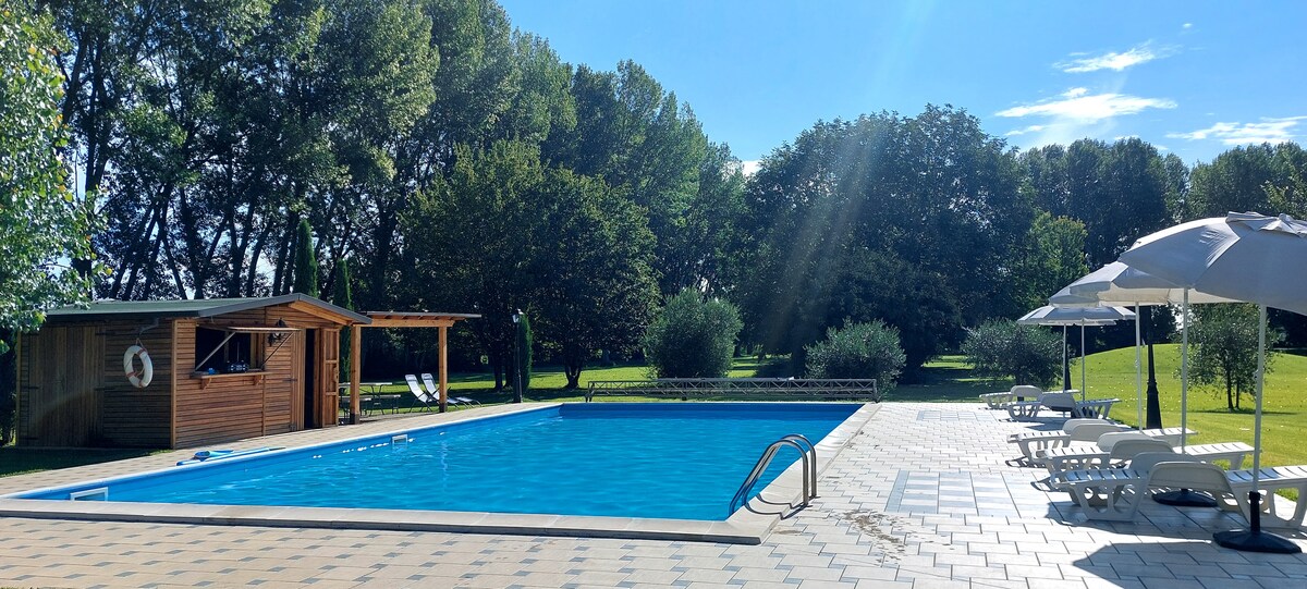 Country Suite im Grünen des Parks des Agriturismo Colombare, in dem sich neben dem Pool und einem Entspannungsteich befinden sich drei Golfplätze und ein Übungsplatz, der von den Gästen kostenlos genutzt werden kann. Es gibt auch einen Grillplatz im Pappelwald für diejenigen, die im Freien essen möchten. Der Bauernhof befindet sich in einer glücklichen Lage im Zentrum historischer Städte wie Mantua Cremona Brescia Verona und nur 20 Minuten vom Gardasee entfernt.