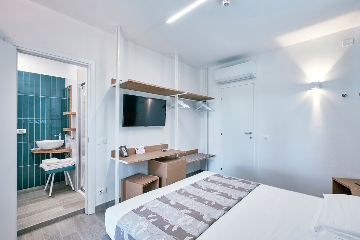 Modernes kleines Zimmer mit minimalistischer Einrichtung. Empfohlene Unterkunft für kurze Aufenthalte. Bezaubernder Gartenpark, Kaiserfrühstück, Strand 100 Meter und Zentrum von Forte dei Marmi nur 3 Kilometer. Romantisches Abendessen im Park möglich. *Die Fotos sind repräsentativ für den Zimmertyp; Es wird nicht garantiert, dass das bei der Ankunft zugewiesene Zimmer dem auf dem Foto entspricht.