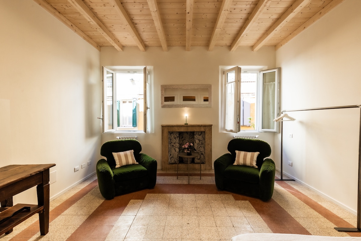 Suite 1 welcomes you to Reggio Emilia! Located on the first floor of a historic, recently renovated building, it is a charming oasis in the lively heart of the city. This charming retreat will immerse you in a unique vintage atmosphere, offering an enchanting setting rich in character. Enjoy the convenience of being in the city center while relaxing in this charming space. Please note: this unit does NOT have a kitchen.