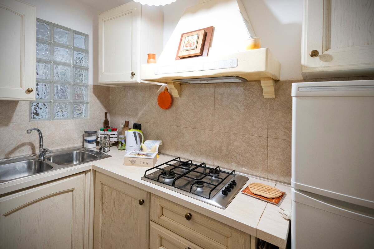 Zweizimmerwohnung bestehend aus: Eingangsbereich mit Doppelschlafcouch, einem bequemen Tisch mit 4 Stühlen, einer modernen Küche mit Induktionsherd, Wasserkocher, Kaffeemaschine, Mikrowelle, Toaster, Kühlschrank und Gefrierschrank. Schlafzimmer mit französischem Doppelbett und Kleiderschrank mit Schiebetüren. Im Badezimmer befinden sich eine Dusche, hängende Sanitärkeramik, ein Haartrockner und eine Waschmaschine mit Trockner. Eine Terrasse mit Garten, auf der man essen kann. Im ganzen Haus gibt es Moskitonetze