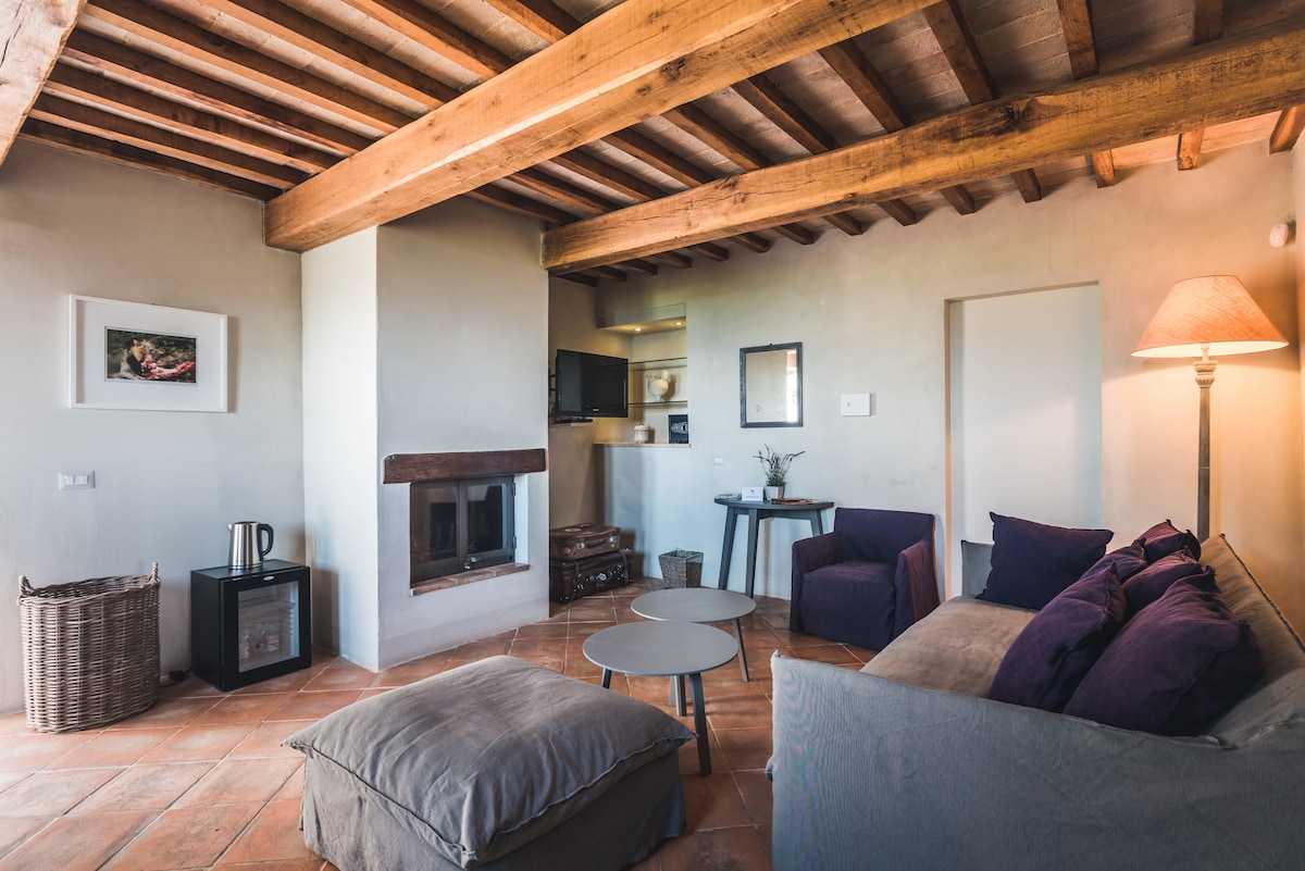 Das Zimmer ist einer unserer sieben Boutique-Räume und befindet sich in einem Bauernhaus aus dem 17. Jahrhundert, umgeben von den Hügeln des Trasimenischen Meeres. Von jedem Zimmer des Anwesens haben Sie einen der spektakulärsten Ausblicke auf den Trasimenischen See und die darunter liegende Landschaft. Der Infinity-Pool, der den Gästen gemeinsam ist, wird mit dem Horizont verwechselt und bietet ein einzigartiges Erlebnis. Das Anwesen ist umgeben von unseren Olivenhainen und Bio-Weinbergen, die Exzellenz der Gegend bieten, die Sie vor Ort probieren können