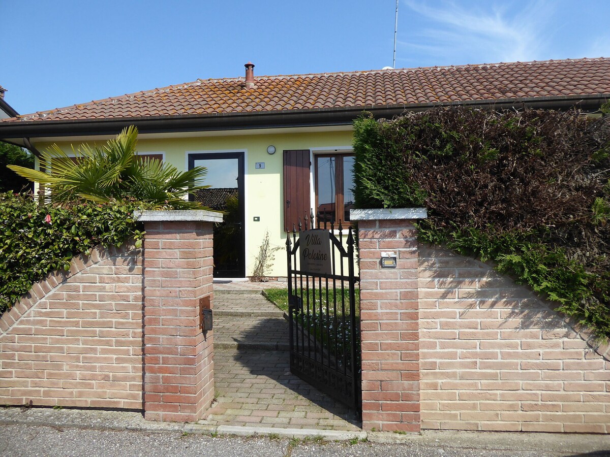 Haus von 57 qm, Teil einer Villa auf dem Land von Polesine, komplett im Grünen und in einer sehr ruhigen Gegend, hat einen Garten von über 3500 qm und ist geeignet für Paare, Einzelpersonen, für Geschäftsreisende und für Familien mit Kindern. Es verfügt über ein 17 qm großes Schlafzimmer mit einem trennbaren Doppelbett und zwei Zustellbetten. Das Wohnzimmer ist komplett eingerichtet und die Küche ist komplett mit allem, was man braucht. Die pelzigen Freunde sind mehr als willkommen.