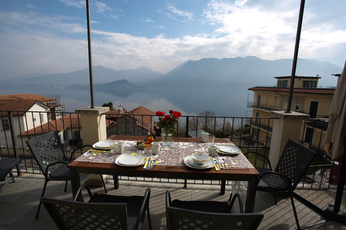 Zauberhaftes Apartment mit zwei Schlafzimmern für bis zu vier Personen, mit atemberaubendem Blick auf den Lago Maggiore und die Berge. Perfekt für Familien oder Paare, die Ruhe suchen, ohne auf Erreichbarkeit zu verzichten. Ideal für kurze Geschäftsaufenthalte, in der Nähe der Schweiz gelegen, 40 km von Lugano, etwa 1 Stunde von Mailand und nur 40 Minuten vom Flughafen Malpensa entfernt
