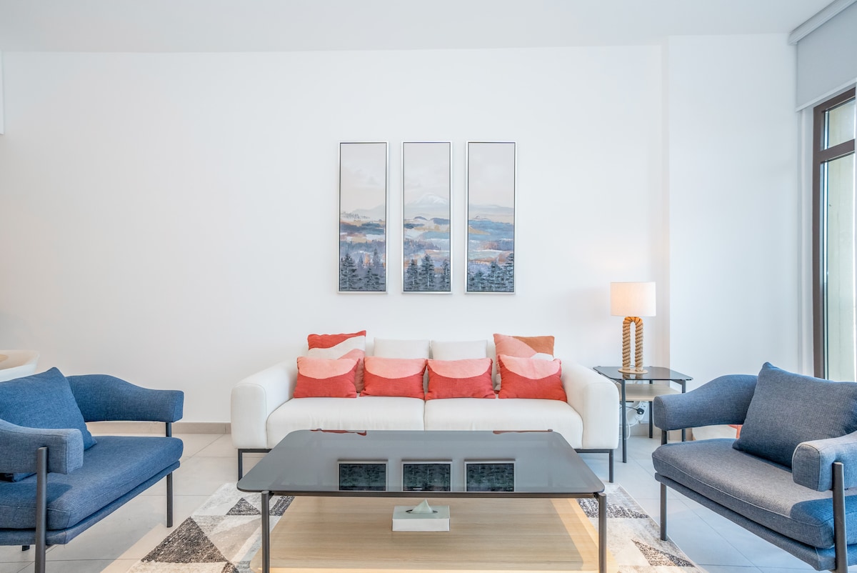 Mit Blick auf den Burj Al Arab, das Jumeirah Hotel, Wild Wadi,das Meer und die Skyline der Stadt ist unser Haus so gestaltet, dass es den Bedürfnissen eines feinen Lebens gerecht wird. Entwickelt, um 3 Erwachsene unterzubringen und ihnen die Flexibilität zu bieten, ein Doppelbett und auch Einzelbett-Optionen zu haben, mit einer voll ausgestatteten Küche und einem stilvoll gestalteten Wohnbereich macht unser Zuhause zu einem großartigen Urlaubsziel. Mit einem geräumigen Wohnzimmer, einer Terrasse und Annehmlichkeiten eines tollen Pools und eines Fitnessstudios markieren wir alle Kästchen für dein zweites Zuhause.