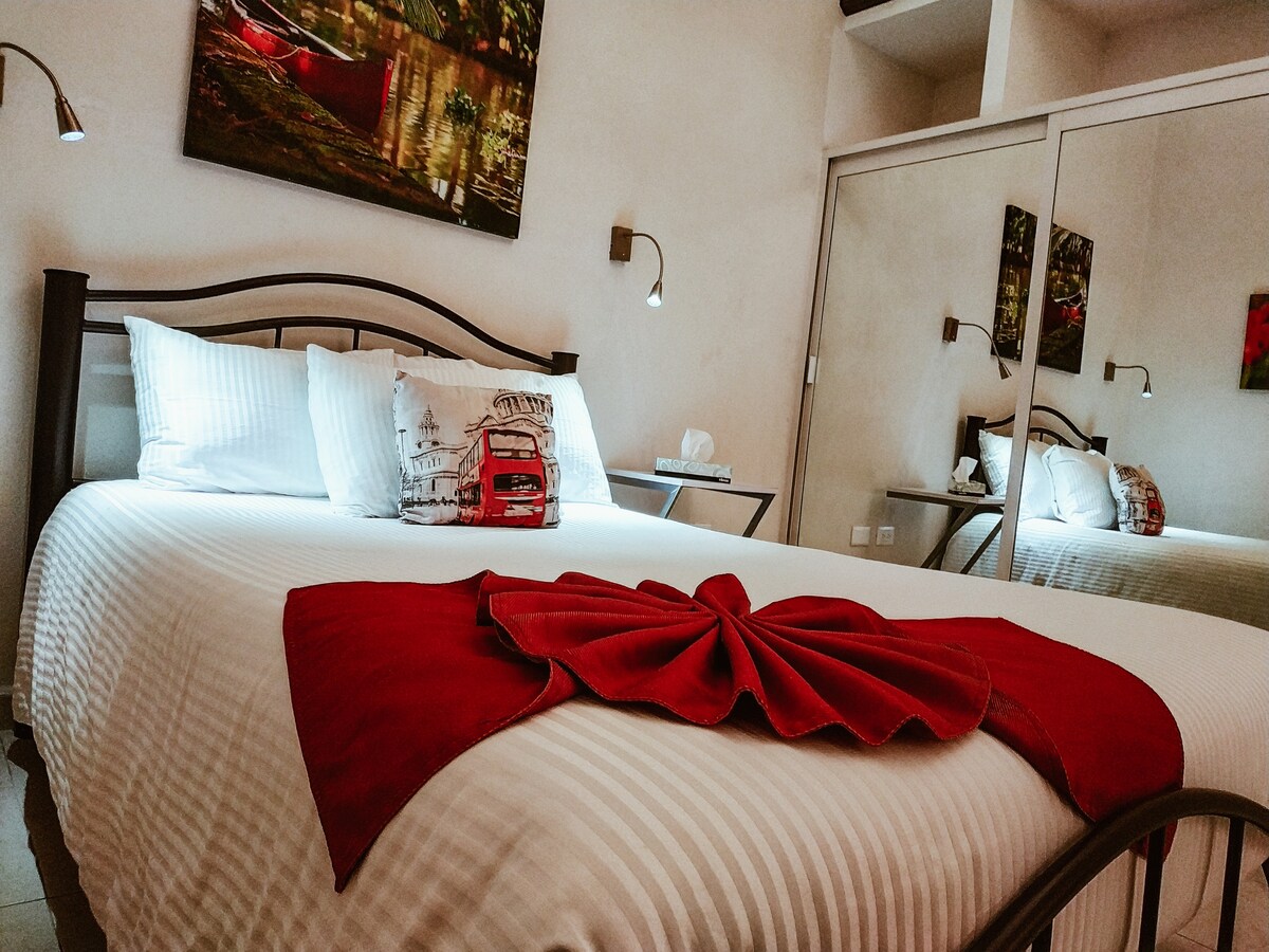ERDGESCHOSS Breites und gemütliches Queensize-Bett. Highspeed-Internet. Schrank und Bügelausrüstung. Bad mit Dusche. INTERNER PARKPLATZ Wir sind 10 Minuten von den Forts von Loreto, 5 Minuten von San Francisco, 4 Straßen der Puebla Süßigkeiten und 7 Blocks vom Zócalo de Puebla entfernt.