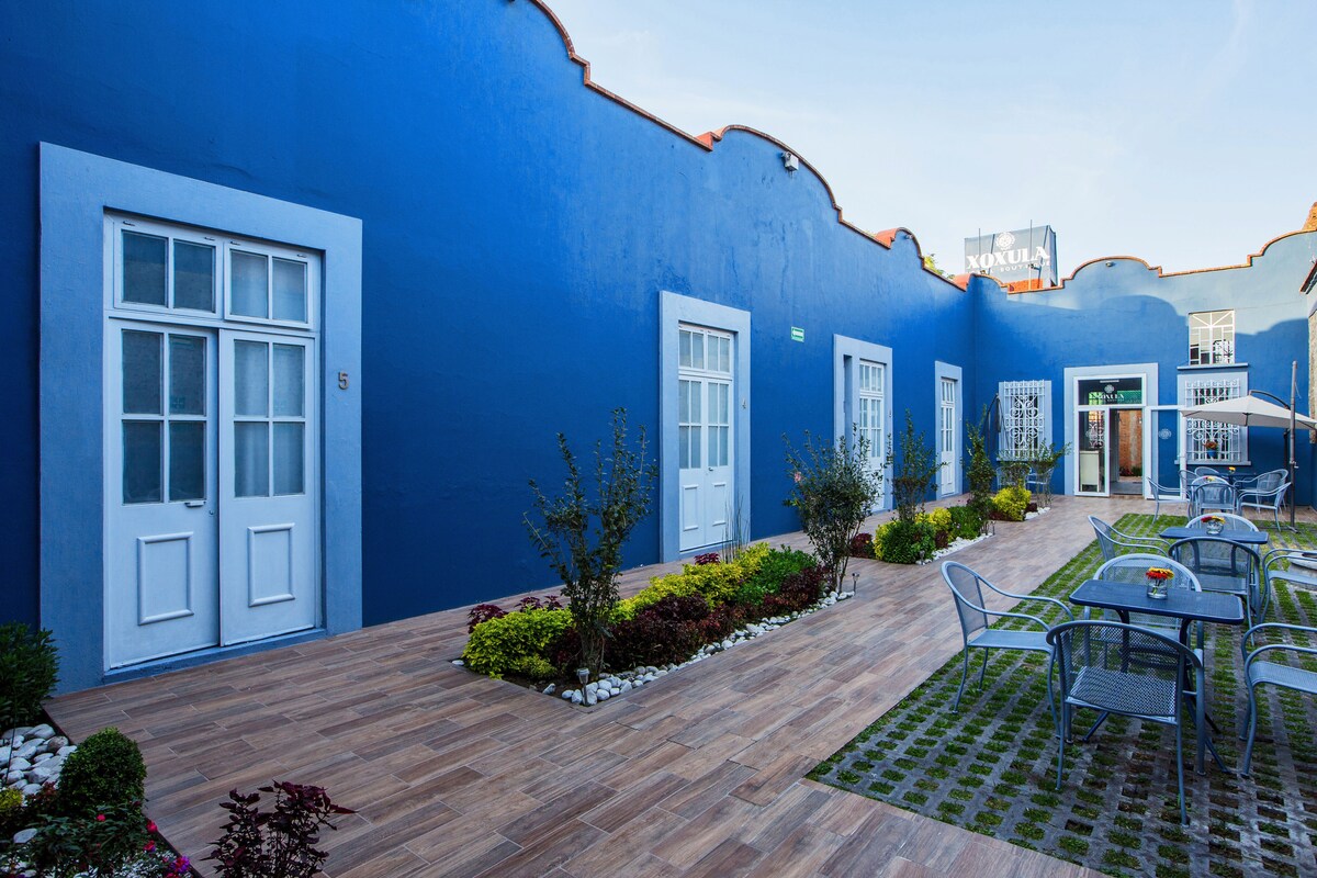Disfruta de una estancia única en nuestro alojamiento boutique en el Centro Histórico de Puebla, Barrio de Santiago. Cama queen, WiFi, terraza y decoración de diseño. Ideal para 1 o 2 huéspedes que busca confort, tranquilidad y cercanía a restaurantes y cultura local