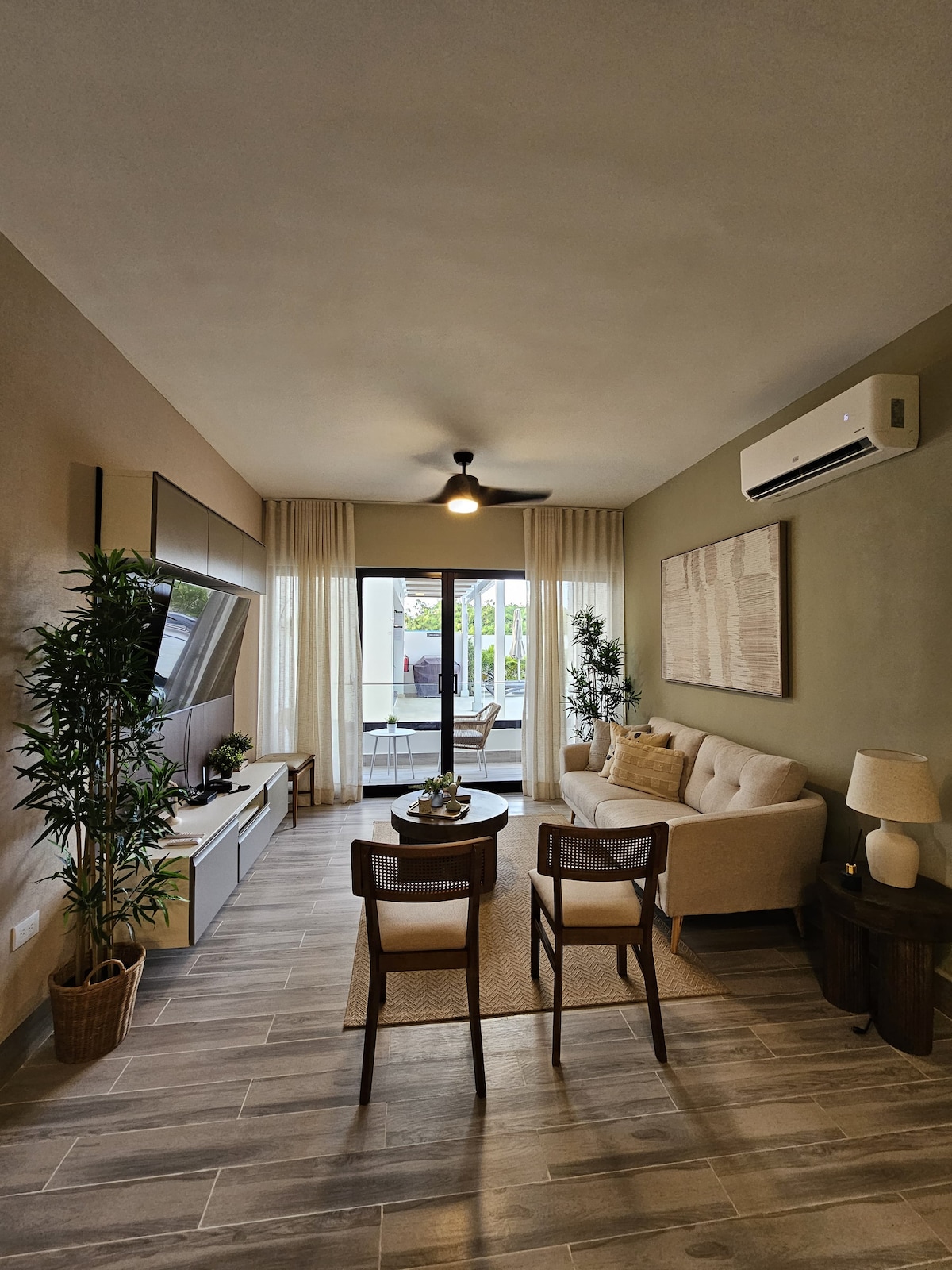 Willkommen in Ihrer Oase im Serena Village, Punta Cana! Moderne Zwei-Zimmer-Wohnung mit natürlicher Dekoration aus Eiche und Bambus, ideal für Familien und Freunde. Genießen Sie 10 Pools, 4 Grillplätze und kostenlosen Transport zum Strand von Freitag bis Sonntag. Nur wenige Minuten vom Flughafen, Stränden, Dolphin Discovery, Supermärkten, Downtown Punta Cana, Hospiten und Adventure Park entfernt. Ausgestattete Küche, Klimaanlage und karibische Atmosphäre. Inklusive 12 kWh Strom pro Nacht (mäßiger Gebrauch).