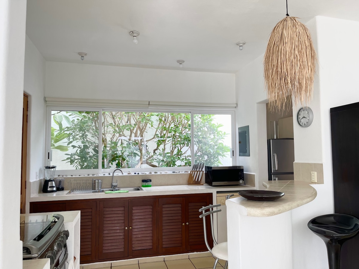 The house is very cozy, while spacious, bright and fresh. It is ideal for families and couples. It is surrounded by large windows, all overlooking the garden. It has different spaces that invite to tranquility and relaxation. It is located very close to 5 of the 9 bays that comprise "Bahías de Huatulco", in a safe, well communicated residential area, near the city center (where there are shops, restaurants, bars, tourism agencies, rental of cars and bicycles...)