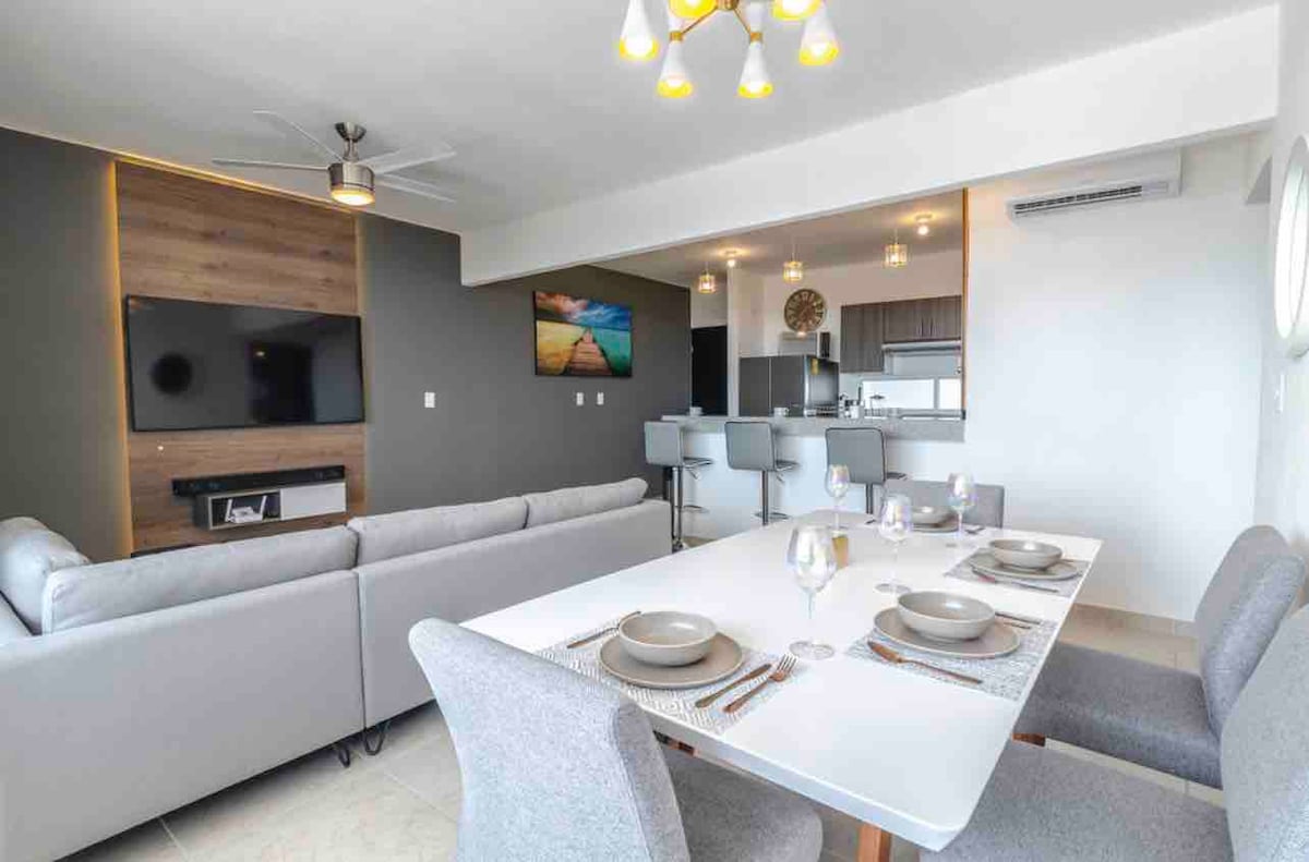 Modern luxury super comfortable 3 bedroom loft located close to the airport and the beach in a upscale neighborhood close to all the new restaurants, bars, casinos, 3 miles from playa las perlas and also to Cancun largest mall. Everything in the condo is new, including all linens and furniture, all new big 4k TVs. All new Air Conditioners everywhere, fully equipped kitchen, washer and dryer, coffee station, Baby Crib, 2 covered parking spots in a super safe condo complex. Book today!