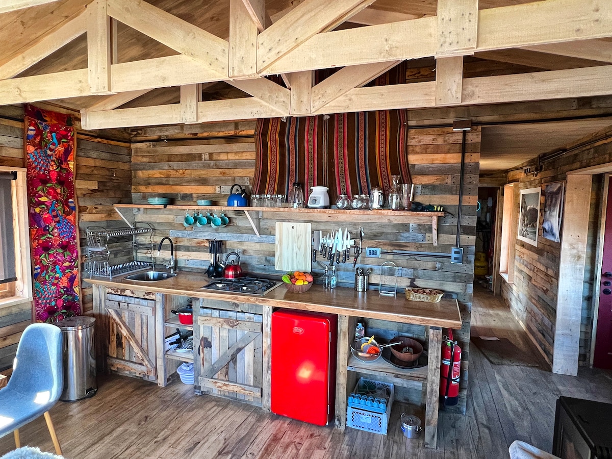 Das Refugio liegt nur wenige Schritte von einem der atemberaubenden Strände des Lago General Carrera entfernt und bietet einen einzigartigen Aufenthalt in Patagonien. Dieses moderne, rustikale Loft wurde 2022 von deinen Gastgebern gebaut und verfügt über 1 Queensize-Bett und 1 Ausziehbett (Cama Nido), einen Holzofen, eine voll ausgestattete Küche, Bergblick, Starlink-WLAN, kostenlose Kajaks für Gäste und *neu für die Saison 2025-2026 eine Sauna am See zur Miete.