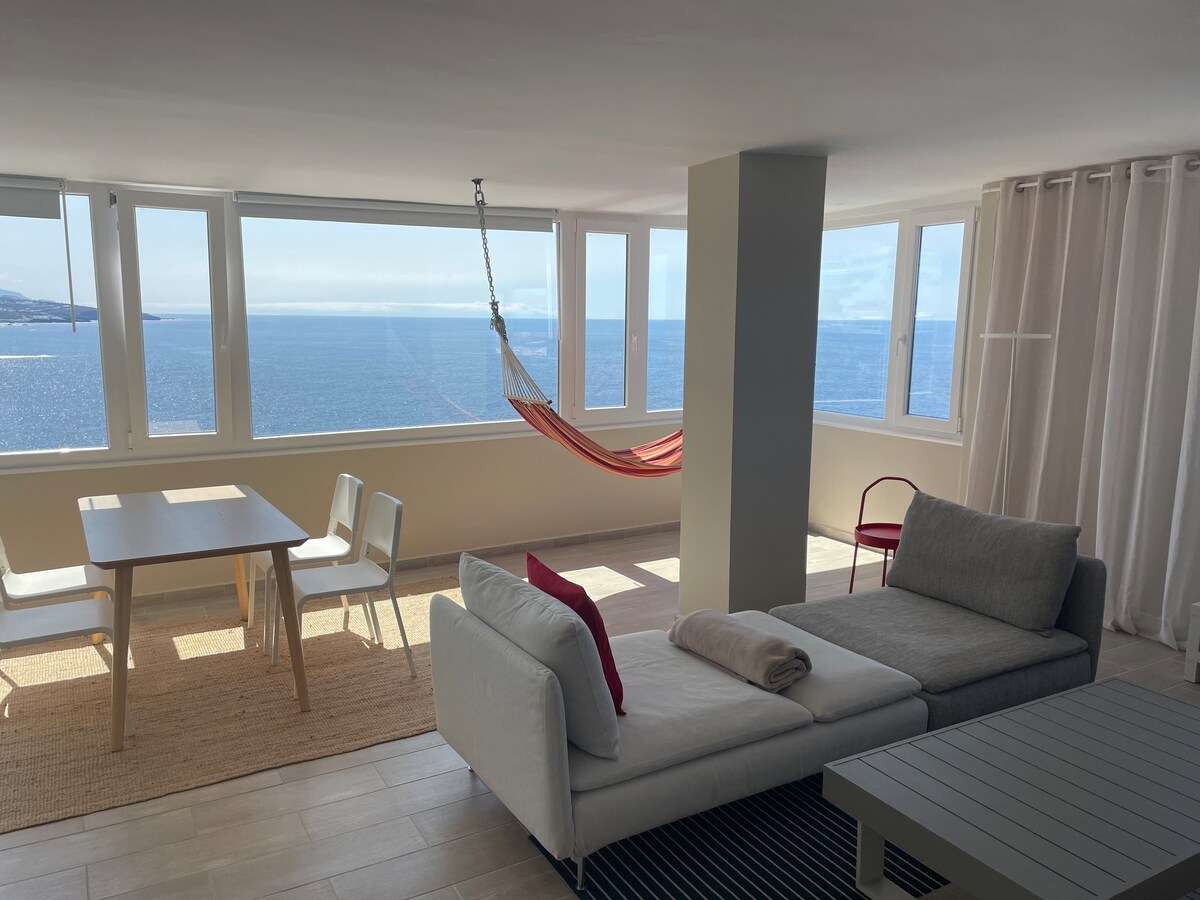 Luxuriöse und renovierte Wohnung mit Meerblick. Die Unterkunft verfügt über eine voll ausgestattete Küche, ein geräumiges Wohnzimmer mit einem Doppelschlafsofa, ein Schlafzimmer mit einem Doppelbett, ein komplettes Badezimmer, 2 Terrassen mit direktem Meerblick, einen kleinen Balkon und einen Whirlpool. Die Wohnung teilt sich den Haupteingang mit einer anderen Immobilie, die sich darüber befindet.