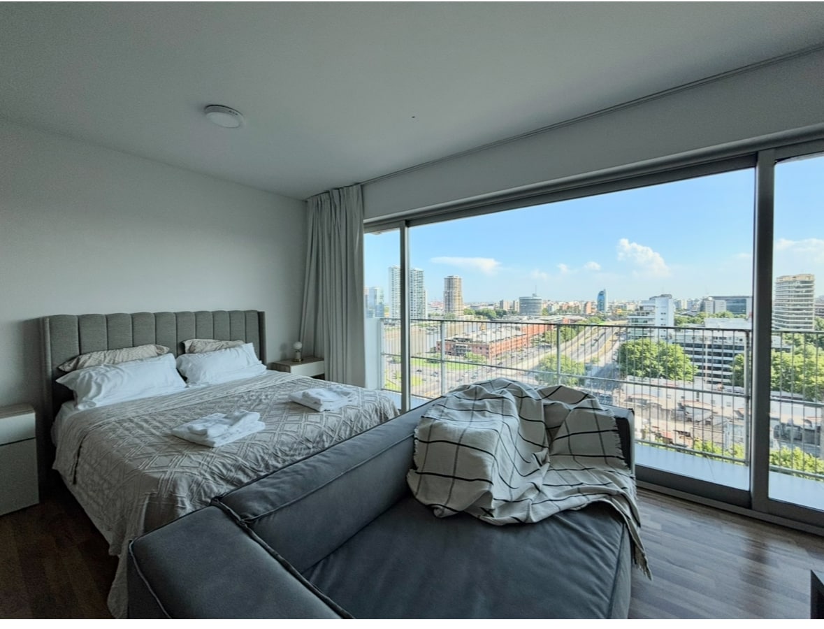 Brandneue Zwei-Zimmer-Wohnung. Voll möbliert und ausgestattet. Im schicksten Viertel von Buenos Aires: Puerto Madero. Sie befindet sich im 12. Stock und bietet einen atemberaubenden Blick auf den Fluss und die Skyline der Stadt. Sie ist ruhig und komfortabel. Die Gegend ist sicher und voller Restaurants und Sehenswürdigkeiten, die einen Besuch wert sind. Die Lage ist sehr günstig. Sie ist zu Fuß von der Plaza de Mayo aus erreichbar. Dieser neuralgische Punkt von Buenos Aires ist durch mehrere öffentliche Verkehrsmittel mit dem Rest der Stadt verbunden.