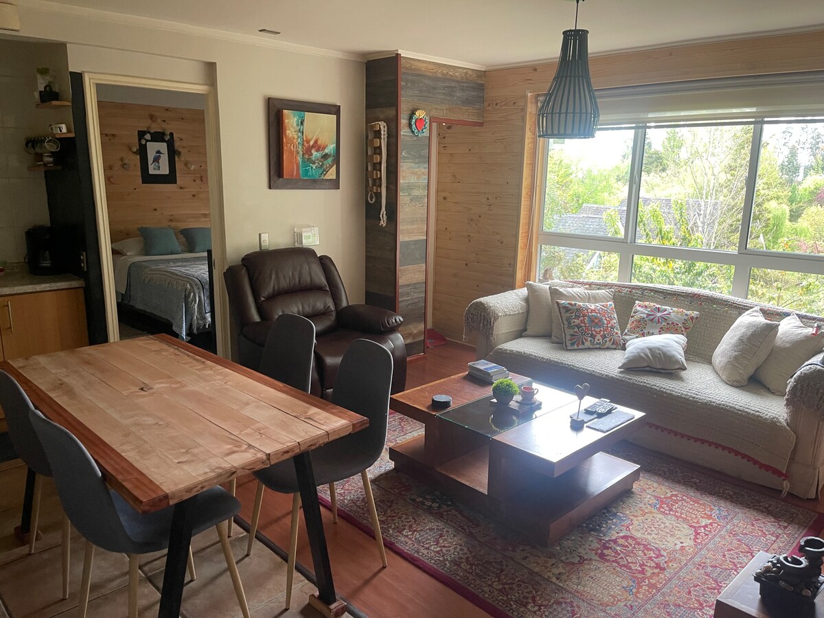 New apartment, with 4 or 5 person capacity. Master bedroom with 2 person bed, living has a sofa bed for 2 more people and also there’s a folding bed for a 5th person. The apartment is full electric. It is located one block from downtown Puerto Varas, 5 from the casino, 6 from the lake and next to a supermarket. Also, the building has access to laundry, gym and barbecue sector. There is no parking.