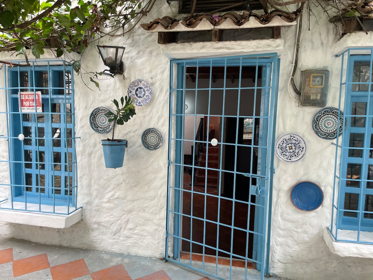 Schönes mediterranes Haus mit Terrasse im kolumbianischen Santorini Doradal, 2,5 km von der Hacienda Nápoles, 20 Minuten vom Naturschutzgebiet Rio Claro, in der Nähe des Busbahnhofs, von Restaurants, Supermarkt und Apotheken. Das Haus ist ideal für Familien und Gruppen von Freunden. Es verfügt über Klimaanlage und Ventilatoren in allen Räumen, 2 Schlafzimmer, 2 Badezimmer, Esszimmer und ausgestattete Küche, Waschmaschine. 2 Doppelbetten, 1 Einzelbett und ein Doppelschlafsofa im Wohnzimmer und TV (Kapazität 7 Personen).