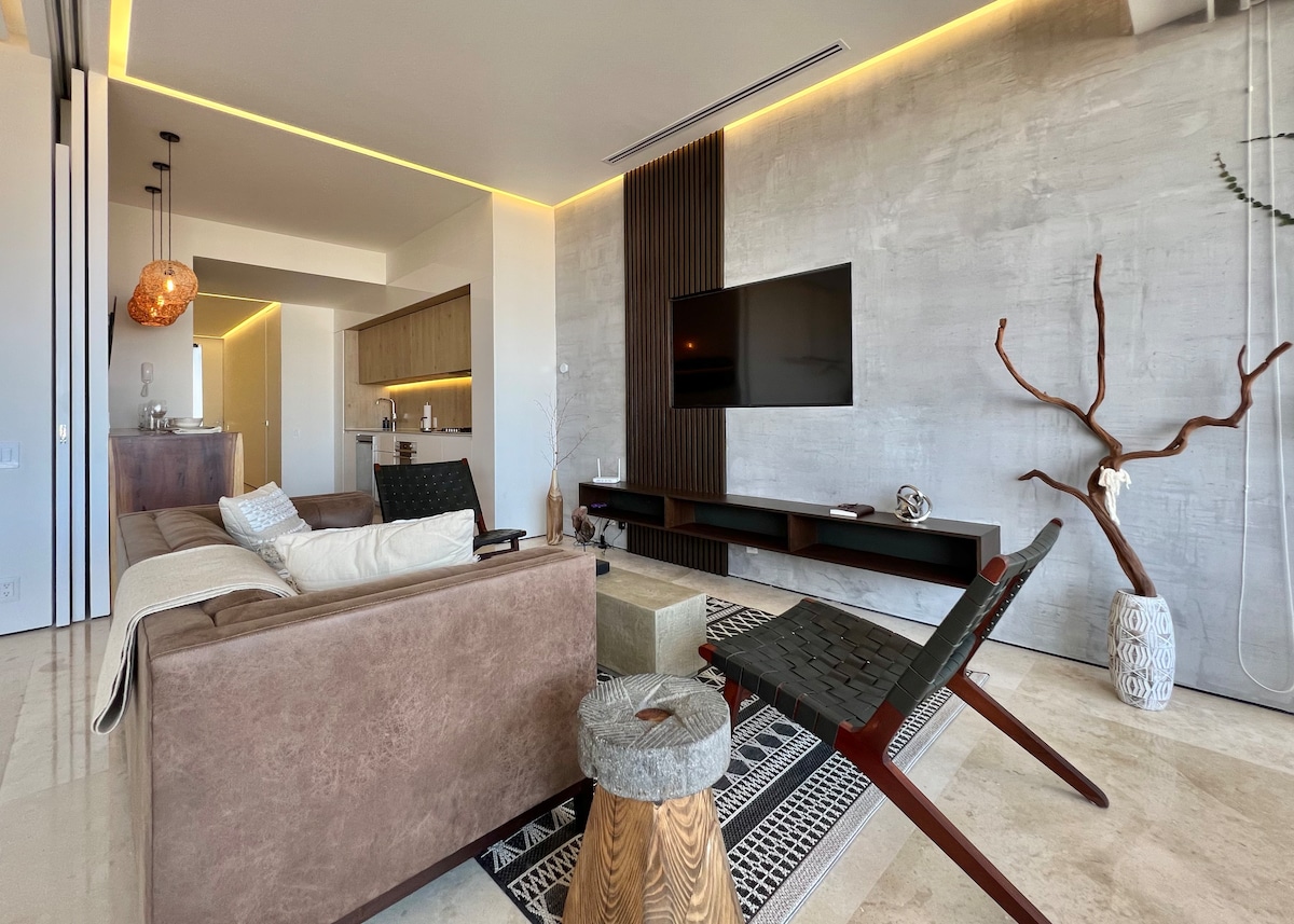 Erlebe modernen mexikanischen Luxus im Zapata del Mar im aufregenden neuen SohoPV, im ❤️ Herzen der Romantischen Zone. Diese von Oaxaca inspirierte Wohnung liegt nur 6 Blocks vom Strand Los Muertos entfernt 🏖️ und im Zentrum von PVs Restaurants, trendigen Bars, Galerien und Unterhaltungsmöglichkeiten. Genieße den legendären Infinity-Pool auf der Dachterrasse 🌊mit Panoramablick oder entspanne dich auf deinem großen privaten Balkon mit Blick auf die Stadt und das Meer. Zu den Annehmlichkeiten des Gebäudes gehören Sonnenliegen, Cabanas, Lounges, eine Feuerstelle, ein Fitnessraum, ein Infinity-Pool auf der Dachterrasse und eine Bar.
