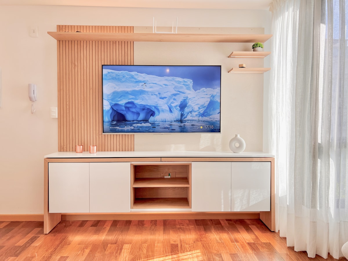 Geräumige Studio-Wohnung in einem neuen Designergebäude mit Parkplatz, voll ausgestatteter Küche, schnellem WLAN, Wohnzimmer mit 50-Zoll-Smart-TV mit DirecTV, Balkon mit schönem freien Blick auf die Skyline der Stadt, Waschmaschine, Doppelbett und geräumigem Badezimmer. Das Gebäude ist sehr schön und verfügt über einen Fitnessraum und eine kostenlose Garage für deine Nutzung. Die Lage ist die beste in der Stadt (Golf), grün, ruhig, sicher und in der Nähe von allem (Punta Carretas Shopping, Parque Rodó, Ciudad Vieja, Rambla, Strand).