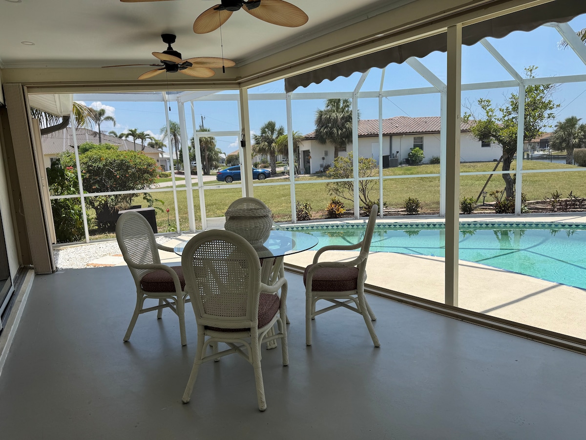 3/2 Einfamilienhaus in Punta Gorda Isles. Entspannen Sie sich in Ihrem abgeschirmten Lanai mit einem beheizten Pool, der den Kanal überblickt, und einem Bootssteg, den Sie von jedem Raum im Haus aus sehen können. In der Nähe von Fisermans Village, Harbor Walk und Ponce De Leon Park. Punta Gorda ist ein Paradies für Bootsfahrer und Angler! Voll ausgestattete Küche, zwei Queensize-Betten und zwei Einzelbetten. Garage für 2 Autos, Waschmaschine und Trockner, Kajaks und Schwimmwesten, Fahrräder, Tischtennisplatte, Dartscheibe, Internet, Live-TV und WLAN.