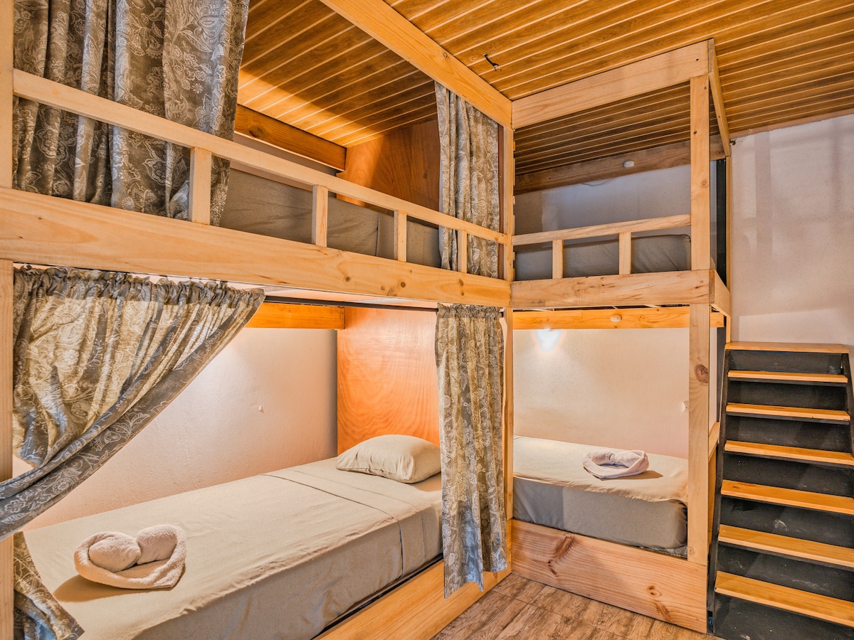 Enjoy privacy in one of our Pod-style beds inside a boutique 6-bed dorm. Each bed includes curtains, a reading light, outlet, and nightstand. Featuring rustic wood finishes, air conditioning, and access to our pool, kitchens, and free Wi-Fi. Perfect for travelers seeking a social experience without sacrificing comfort and style in the heart of Uvita!