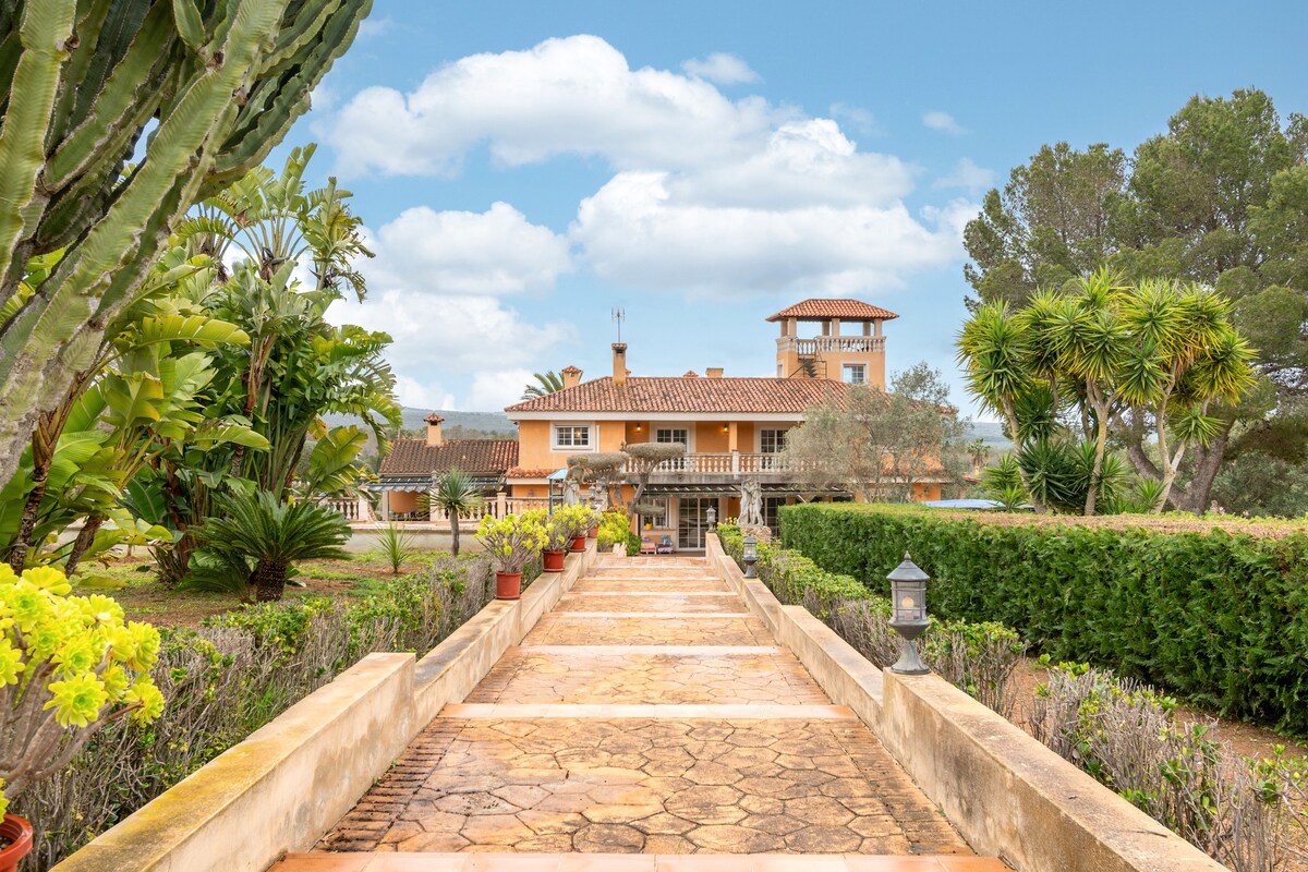 Charmantes und intimes Haus 10 Minuten von Palma entfernt mit 7000 m2 Garten, Pool, klimatisiertem Außenwhirlpool und schönem Garten. Es besteht aus 3 Schlafzimmern und 2 Bädern. Es verfügt über eine große Terrasse mit Blick auf den Garten, Veranden, Kamine, Grill, Klimaanlage und Heizung ... Sehr geräumig und komfortabel. Ruhige Gegend, 7 km vom Zentrum von Palma, Flughafen und Stränden entfernt. Supermärkte 1 km entfernt. Ideal zum Ausruhen, Inselausflüge, Radfahren usw. Wir lieben Haustiere, also bringen Sie sie mit ;-)