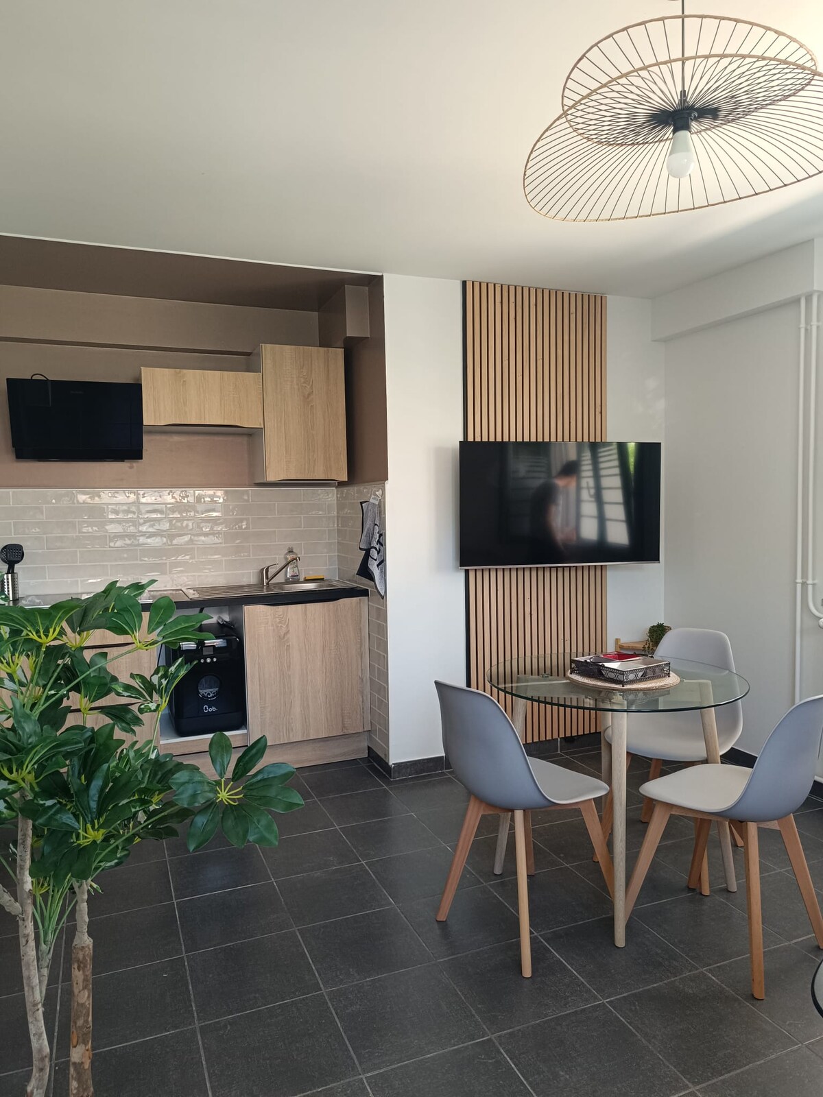 Unabhängiges Studio im Erdgeschoss, kürzlich (2023) mit Bad und separatem WC. Du kannst den 500 m ² großen eingezäunten Garten mit Liegestühlen und einem schattigen Bereich für Mahlzeiten im Freien genießen. Hier lieben wir Tiere und du bist herzlich eingeladen mit Hund, Katze, Kamel. Voll ausgestattet mit einem echten Bett mit bequemer Bultex-Matratze und einer voll ausgestatteten Küche mit Kühlschrank, Induktion, Kaffeemaschine und Wasserkocher. Bettwäsche und Handtücher werden bereitgestellt. Waschmaschine für 5 €, Waschmittel inbegriffen.