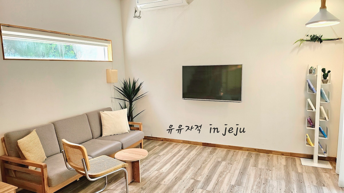 Hallo. Unsere Unterkunft befindet sich in einem kleinen und hübschen Dorf namens Sehwa-ri, Pyoseon-myeon, Seogwipo-si, südöstlich der Insel Jeju. Es gibt 6 Häuser auf einem geräumigen Grundstück von etwa 500 Pyeong, und es gibt ein kleines Gemeinschaftscafé, in dem du dich während deiner Reise entspannen kannst. Es gibt Zitrusfelder rund um das Grundstück, sodass das ganze Dorf im späten Frühling mit dem Duft von Mandarinenblumen gefüllt ist. Am Morgen kannst du den Tag beginnen, indem du den Vögeln zuhörst und köstlichen gerösteten Kaffee im Gemeinschaftscafé genießen. Am Abend kannst du nach der Rückkehr von deiner Reise einen ruhigen und komfortablen Schlaf abseits des Lärms der Stadt genießen. Wenn du nicht schlafen kannst, kannst du auch einen Netflix-Film mit einem Strahlprojektor (LG Electronics PF50KS) genießen. Wir hoffen, du genießt die Freizeit und Entspannung unserer Unterkunft, inmitten der Natur, abseits des geschäftigen Alltags des Stadtzentrums, und wir werden unser Bestes tun, um Gastgeber zu sein. Vielen Dank an alle, die unsere Inseratsseite besucht haben, und alle sind glücklich.