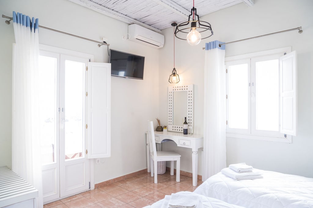 Das Evita Guesthouse ist ein wunderschön renoviertes Haus im kykladischen Stil im Herzen von Vourvoulos, Santorin. Einst ein beliebter Sommerurlaub für eine einheimische griechische Familie, heißt es jetzt Gäste willkommen, die Komfort, Authentizität und den Charme des Insellebens suchen. Genieße die Wärme echter Gastfreundschaft mit täglicher Zimmerreinigung und täglicher Whirlpoolreinigung, damit du dich vollständig entspannen und das Beste aus deinem Aufenthalt auf Santorin machen kannst.