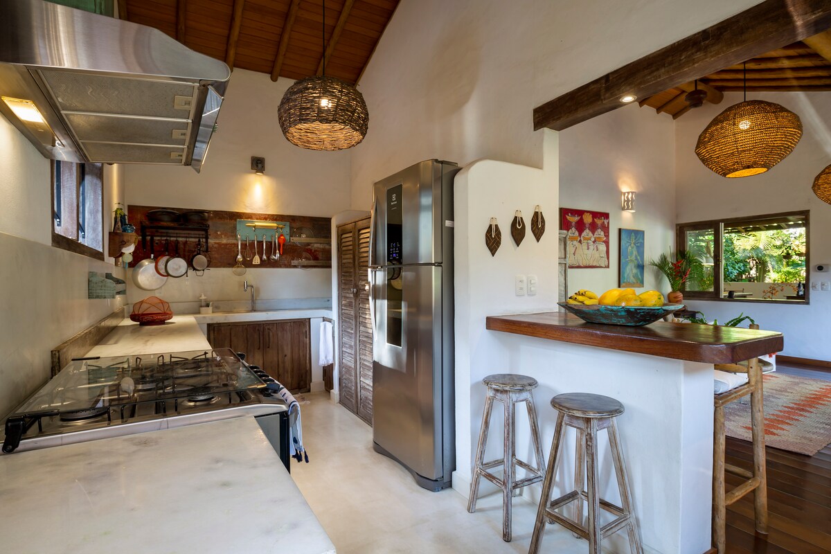 Unser kleines Haus wurde mit großer Zuneigung entworfen, um unseren Gästen maximalen Komfort zu bieten, von einem unglaublichen privaten Whirlpool auf dem Deck Ihrer Suite, 400-Draht Bettwäsche bis hin zu einem ausgezeichneten 200 Mb Glasfaser-Internet für diejenigen, die zu Hause sind. Unsere Villa ist 2.200 m² groß mit schönen Bäumen, die eine Show bieten. Wir haben tägliche Besuche von 3 Arten von Affen, mehrere Vögel und sogar faulen Tieren. :) Wir sind 2 km vom Platz und 3 km vom Strand + in der Nähe