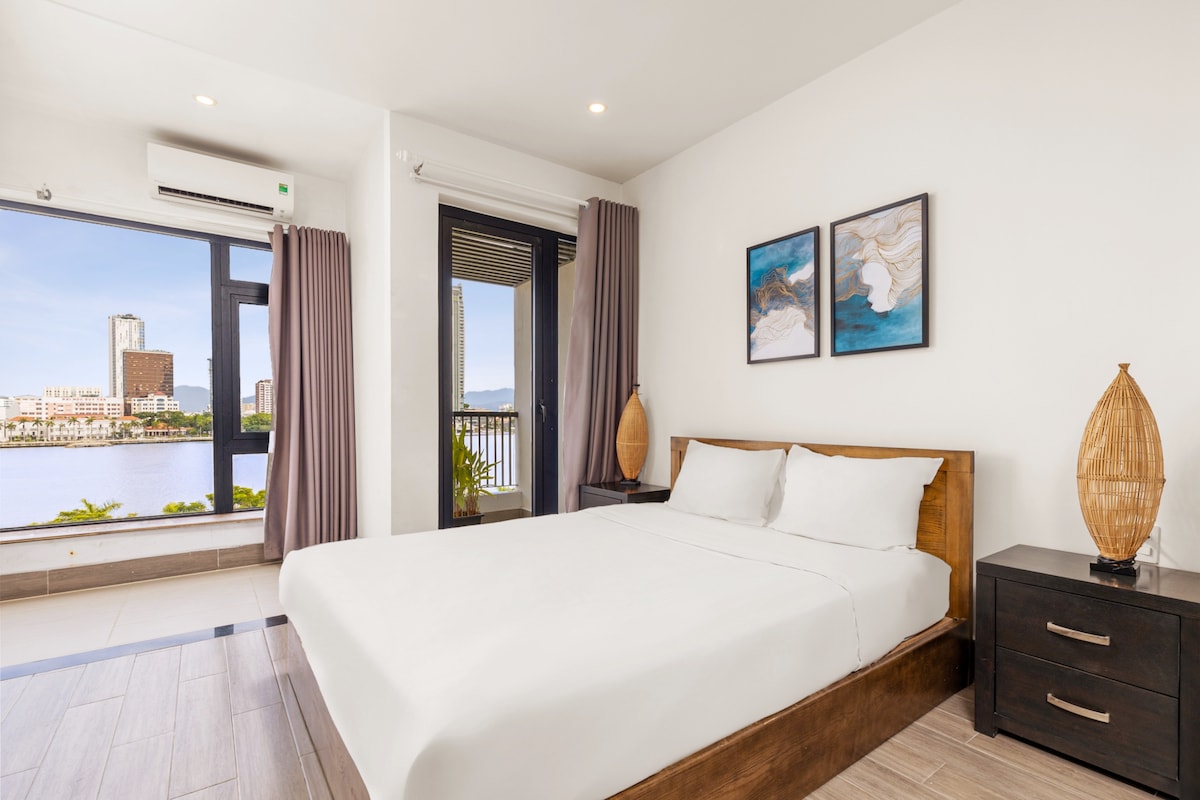 ✓ Monarchy Building is a popular choice among travelers for its central location & modern design. ✓ Enjoy open, refreshing views of the mountains, Tran Thi Ly Bridge, Han River, cruise ships, and city lights from the room. ✓ Near the river, the building stays naturally airy and cool, perfect for relaxation or long stays. ✓ Just minutes from Son Tra Night Market, the city center, and Da Nang’s beaches. ✓ A spacious balcony & cozy interior make this apartment ideal for a memorable vacation.