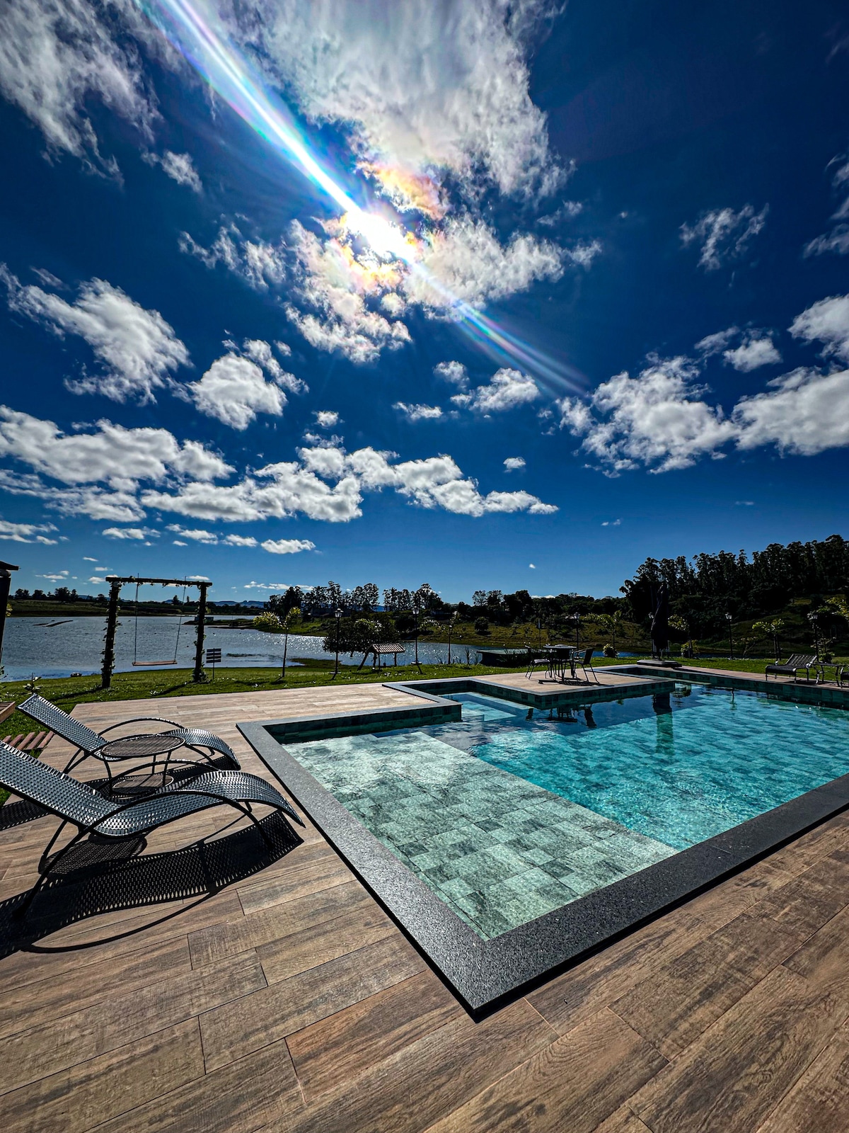 Curta uma experiência neste lugar único aconchegante romântico,com piscina AQUECIDA c hidro coberta com tenda que fecha para total privacidade, cama Queen c massagem, lareira externa caíaque disponível,apenas 200 mt da represa onde é ideal para nadar pescar esportes aquáticos,dentro de um condomínio fechado a 3km do centro da cidade wi-fi ,2 quartos com ar cond central ,sacada ,sala tv smart 50 com streaming cozinha completa, Um lugar para colecionar memórias relaxar ideal para casais ,família.