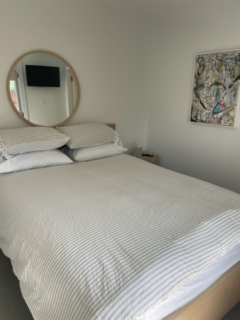 Escape to Giraffe Studio, a chic designer beachside retreat in Freshwater. This luxurious, light-filled studio comfortably fits 2 guests and features a king bed, kitchenette, and a private deck with distant ocean views. Perfectly located just a short walk from Freshwater beach and the vibrant village, it's the ultimate tranquil getaway for couples. Strict no event policy and quiet hours.