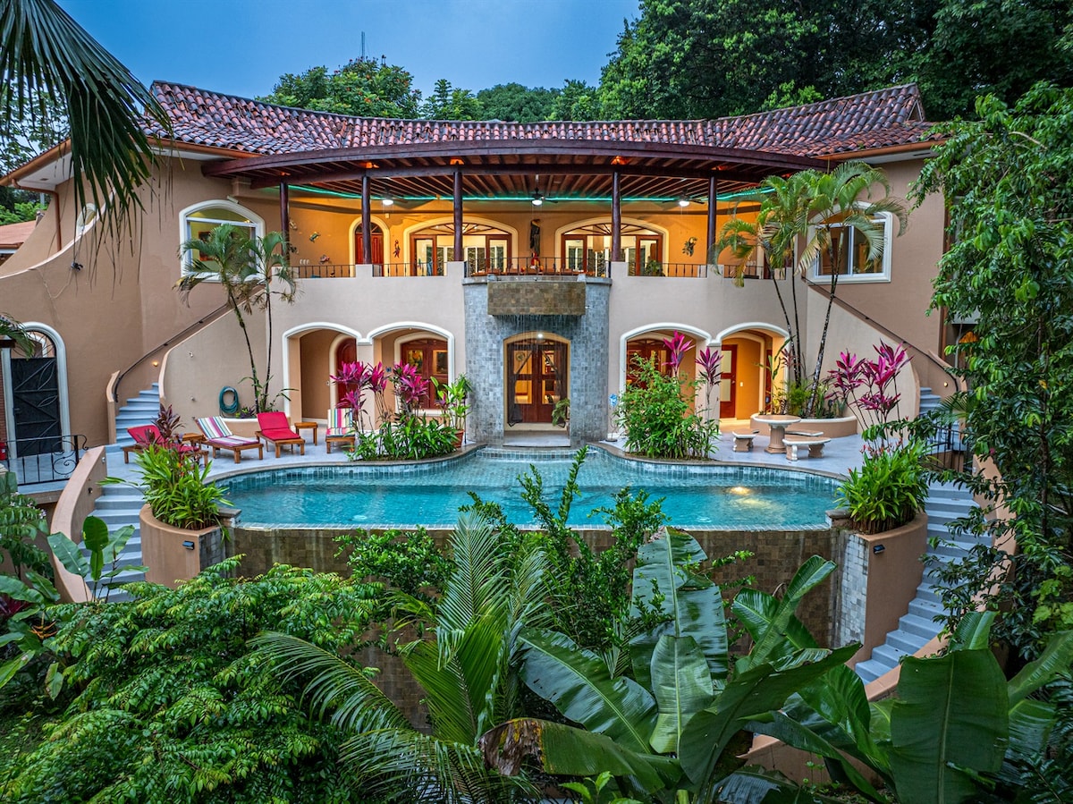 Nestled in the trees of your private preserve, this luxury treehouse, with a private pool & cabana, offers a stunning home base to explore nearby Manuel Antonio National Park and Beach! Just 5 minutes to Park, beach, shops & restaurants, this brand-new home has it all. Chef's kitchen with brand new appliances, fast WiFi, luxury mattresses, 2 BRs w/ private baths, Bunk Bed, AC, and tire swings. With a private hiking trail, replete with sloths, monkeys, exotic birds, and armadillos!